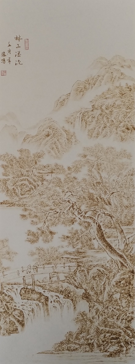 2013年,王风鸣已经可以在薄薄的宣纸上烙画了。