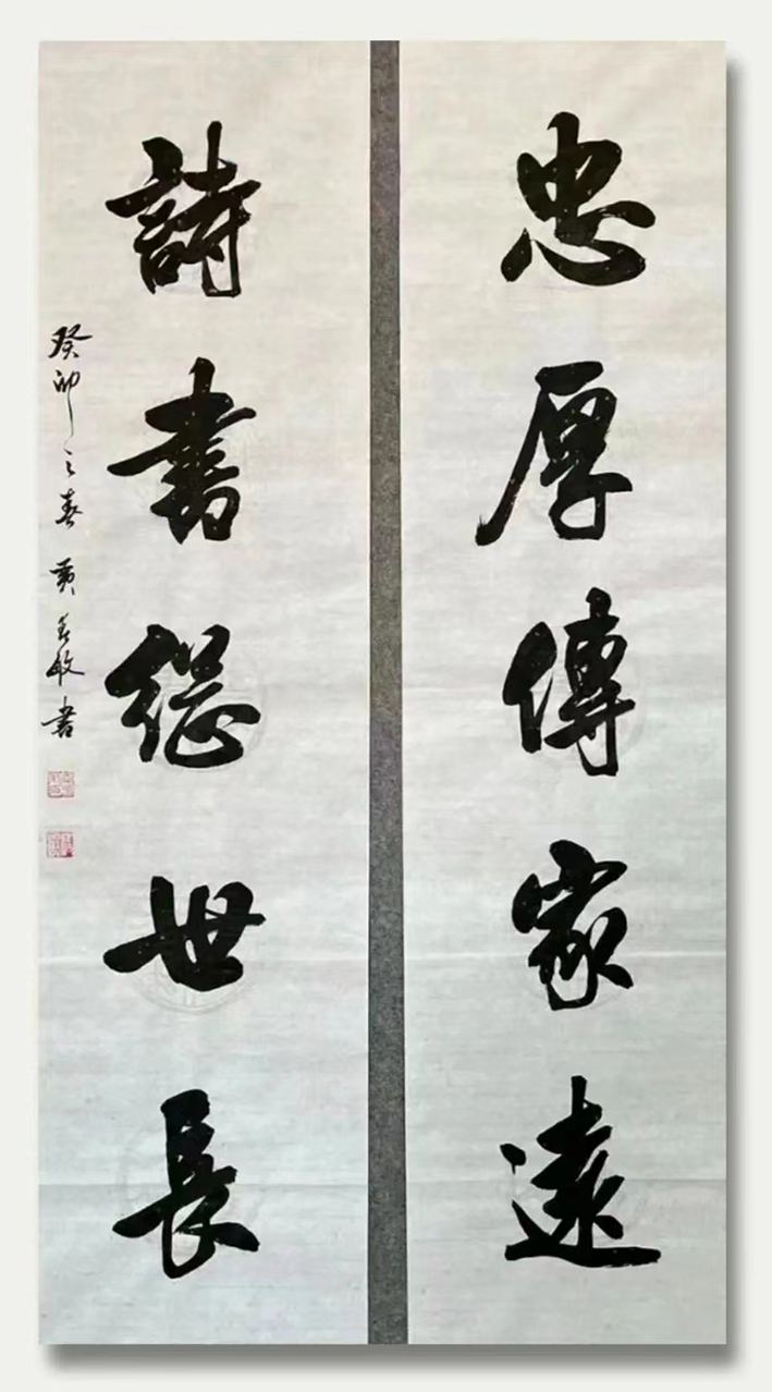 四十年临池不辍,遍临历代名家碑贴,由喜欧楷。近年来渐成自家风格,法度严谨,骨气劲峭,平正中见险绝,规知中见飘逸。诸体皆精,已行成自己的风格。