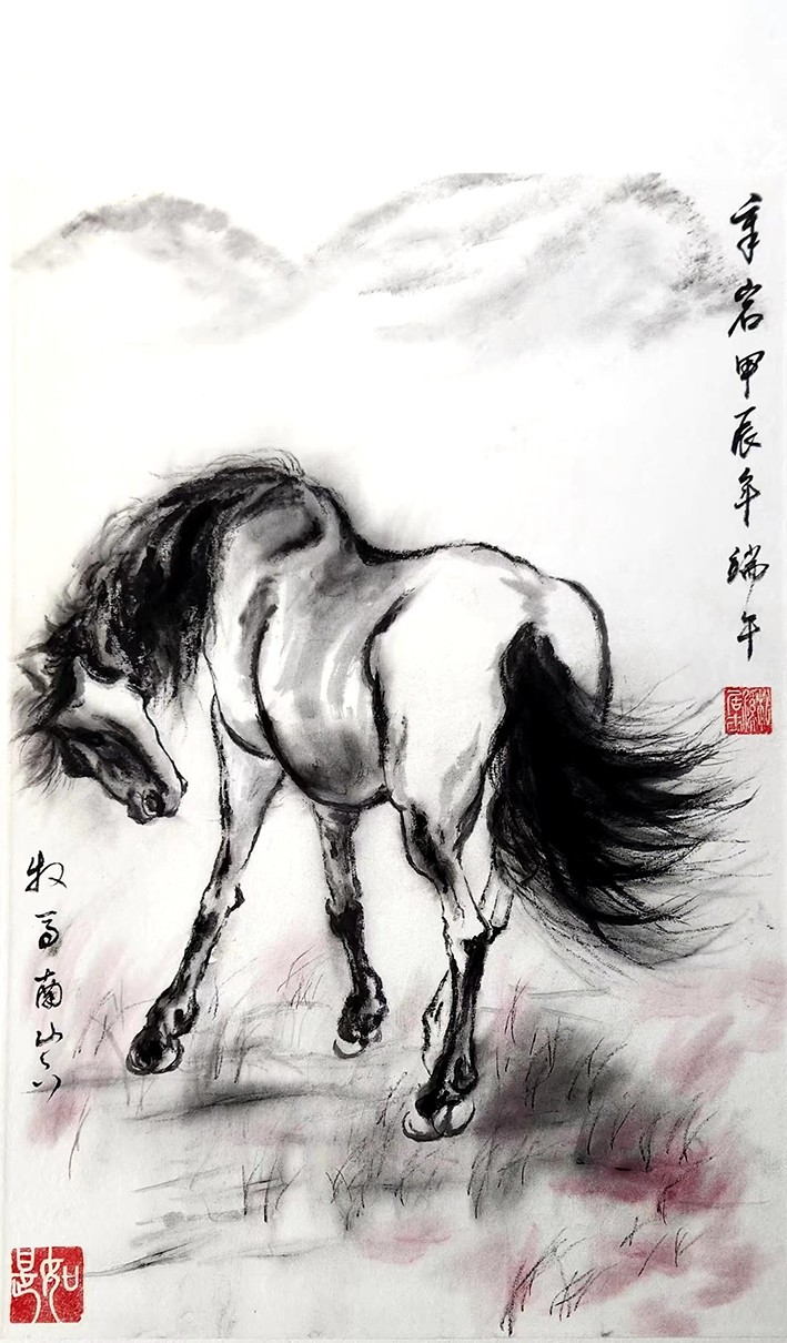 做为画家,自幼喜好绘画,以西画入手、先素描、后水彩,立意于中西绘画取长补短,相结合对美的感受进行表达。中国山水、花鸟、人物画以及金石、篆刻皆通,主攻中国泼墨写意画。开创了具有极简主义禅意风的“中国枯山水绘画”风格,具备“简洁静寂、空灵悠远” 的高度概括艺术风格,“有山处隐山、无水处喻水”,留白处显现幽思和气韵,体现出“一花一世界、一叶一菩提”的自然观,以 “简洁、悠长、雄浑、静谧“的艺术风格著称。擅画写意山水、人物、松树、荷花、虎、马等,且多假以泼墨形式。山水画致力于将北方地区的雄浑、苍茫用中式写意风格来表达,以宋画开始入手,远师马、夏,再王蒙、倪云林,后渐江,至近代的张大千,兼习傅抱石、石鲁、赵望云、谢稚柳、吴湖帆;花鸟画以八大山人为师,兼习青藤白阳、任伯年、恽寿平、吴昌硕、齐白石;人物、动物画师任伯年、徐悲鸿、刘继卣等。书法以楷入行到草,行书师赵松雪、董其昌,草书远追钟张、二王,师孙过庭、怀素,金石篆刻以吴昌硕、邓石如为师。
