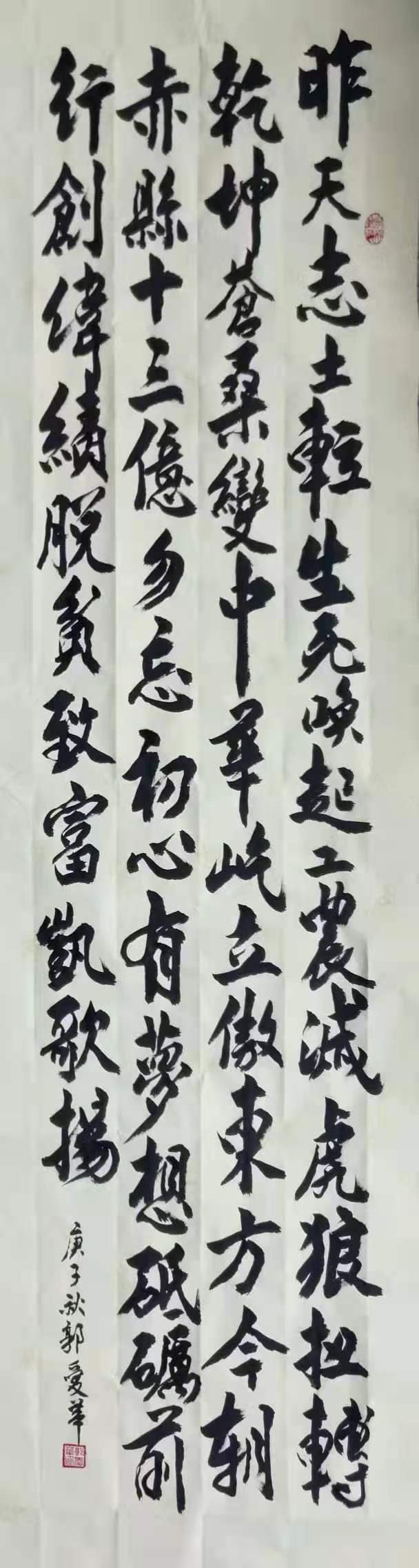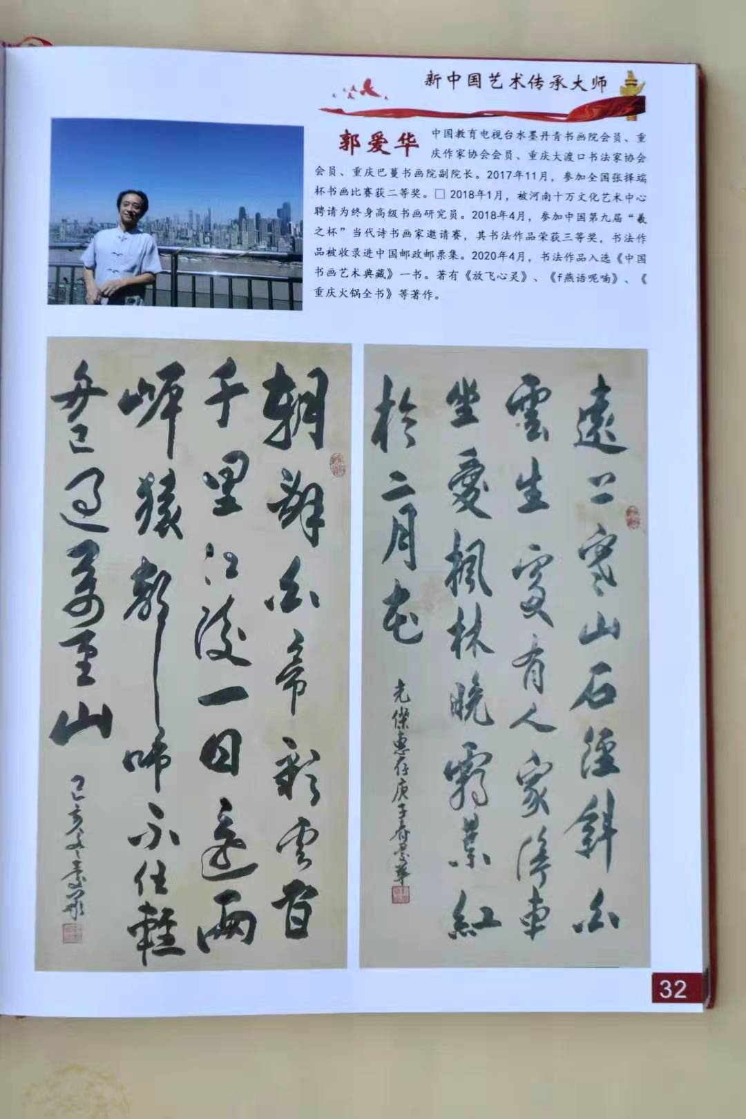 郭爱华先生,中国教育电视台水墨丹青书画院院士、重庆巴蔓书画院副院长、大渡口书法家协会会员。2017年全国首届《张择端杯书画比赛》二等奖,2018年获第九届《羲之杯当代书画家邀请赛》三等奖,2020年获墨韵中华全国书画展金奖。
