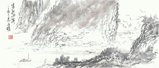 画家自幼潜修,习文练武,好国画,经过长期的艺术实践,将太极理论和禅学联系结合,以此为创作的支点融入水墨丹青,寄情于山水,形成独特的艺术语言。作品呈现出和谐、深邃、静美的视觉舒适感,同时蕴含恢宏的气量,给人以强烈感染力和无限的遐想。