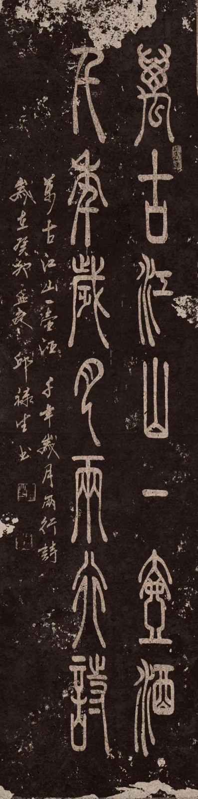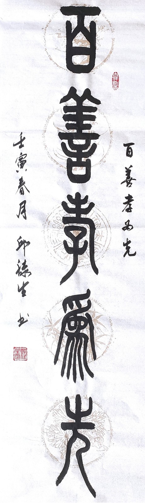 2022年10月,邱禄生隶书中堂捐赠给河南省开封市朱仙镇岳飞庙的书法作品《气吞山河 精忠报国》被该庙永久收藏并制作成140*70*8(厘米)的石碑,永久入驻岳飞庙碑林。