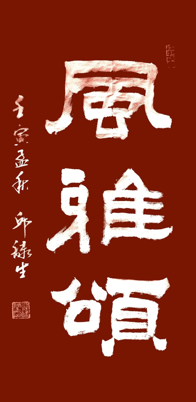 2023年3月,邱禄生隶书中堂(180*96)《红船精神》受邀参加内蒙古自治区乌兰察布市政协主办的“乌兰察布中外榜书书法展”。