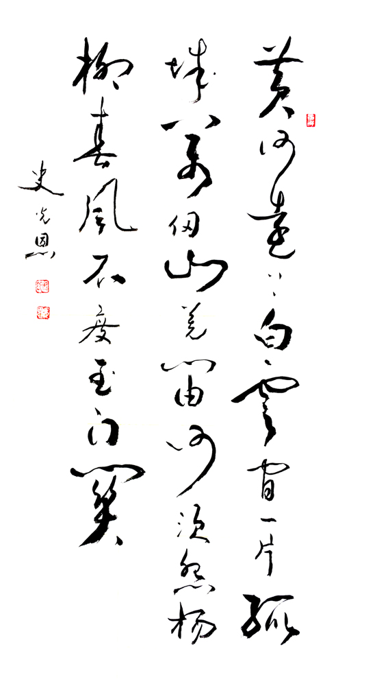 书法泰斗沈鹏老师的评价:光恩的作品表现流畅,干枯浓淡俱在,笔意变化犹如从心中走出,一招一式,一笔一划妙处横生,非常洒脱,笔法意趣率真,章法行走自如,用笔凝练有力而不失草书之法度。