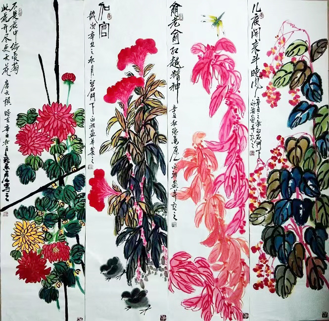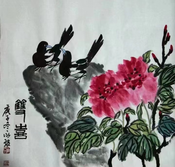 所谓的艺术来源于生活,其他的花鸟画作品情感丰富,在加上对齐派艺术的研究,他的每副作品用色大胆,色泽对比强烈,对人一种视觉上冲击力并且体现了齐派艺术的特点与魅力。