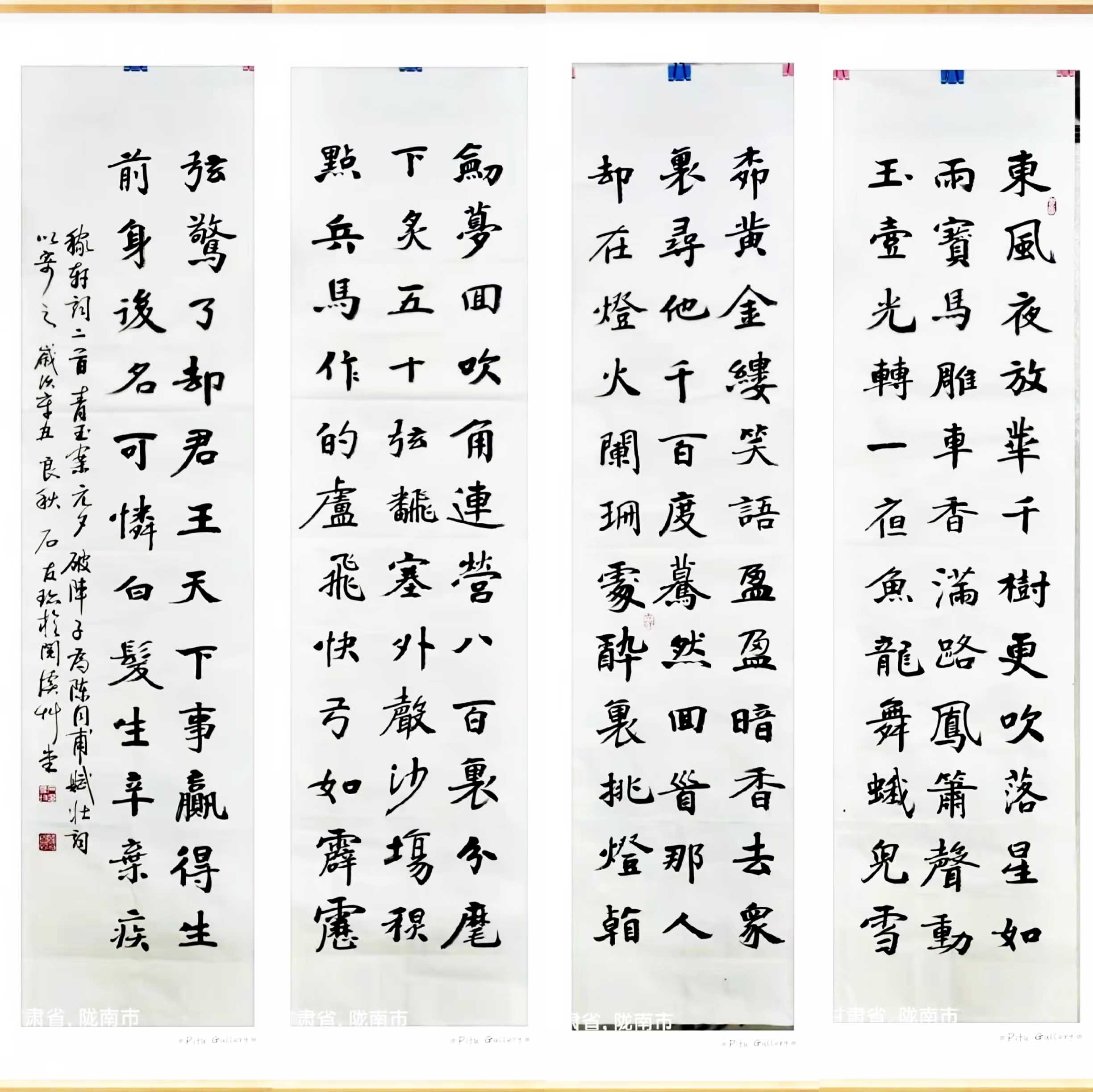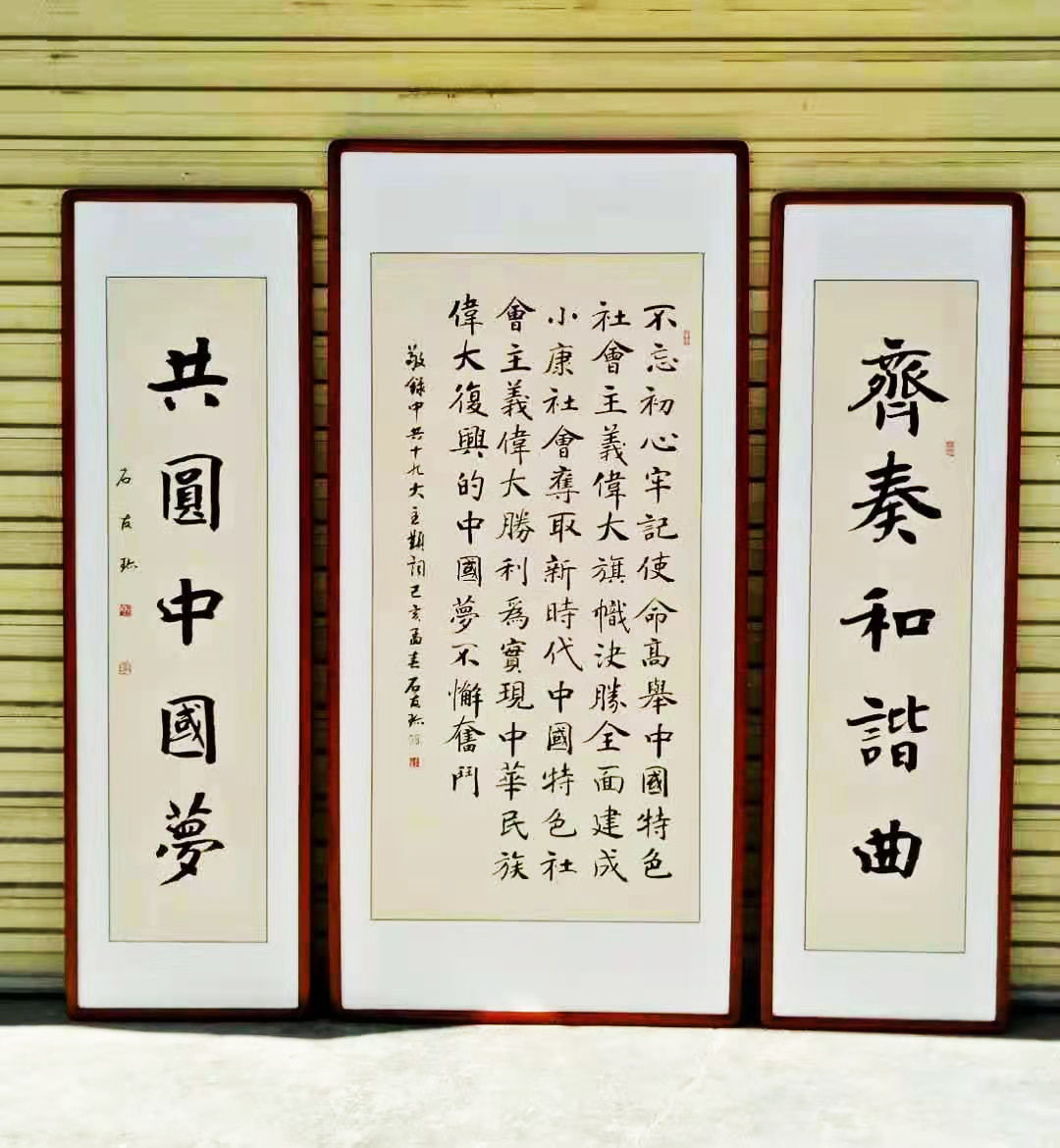 书法作品在省内外各种大展中入展或获奖,楷书条幅十九大主题词被兰州理工大学永久收藏。