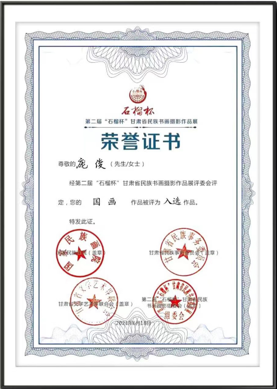 《雨后幽庄图》获甘肃省非物质文化遗产精品赴俄交流归国汇报展一等奖;