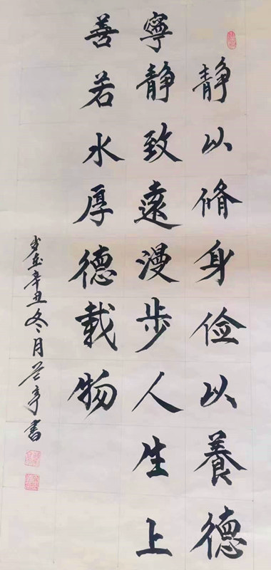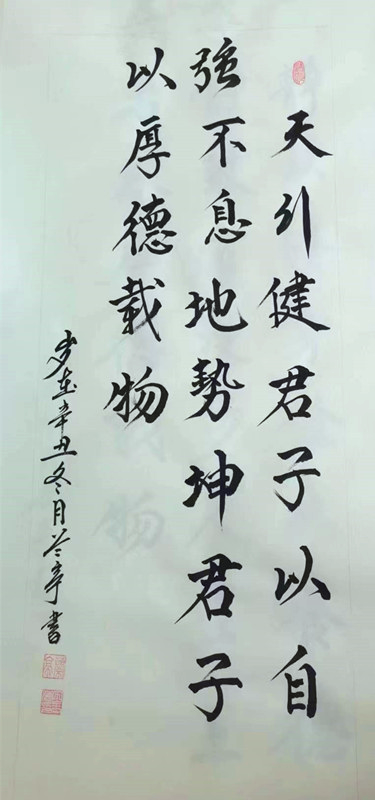 田玉海,男,汉族,1954年生,甘肃省古浪县人,1972年参军服役六年。本人爱好书法,其作品既有形质的端庄遒劲,又富有性情的灵动和深刻的内蕴,书法苍劲有力,雄浑大气,广泛涉猎、博采众优。数十年坚持传统、书风纯正、法度严谨、作品内容丰富,深受书法爱好者和藏家的喜爱。2022年参加第一届“嘉远瀚海杯”全国书画艺术大赛一等奖。