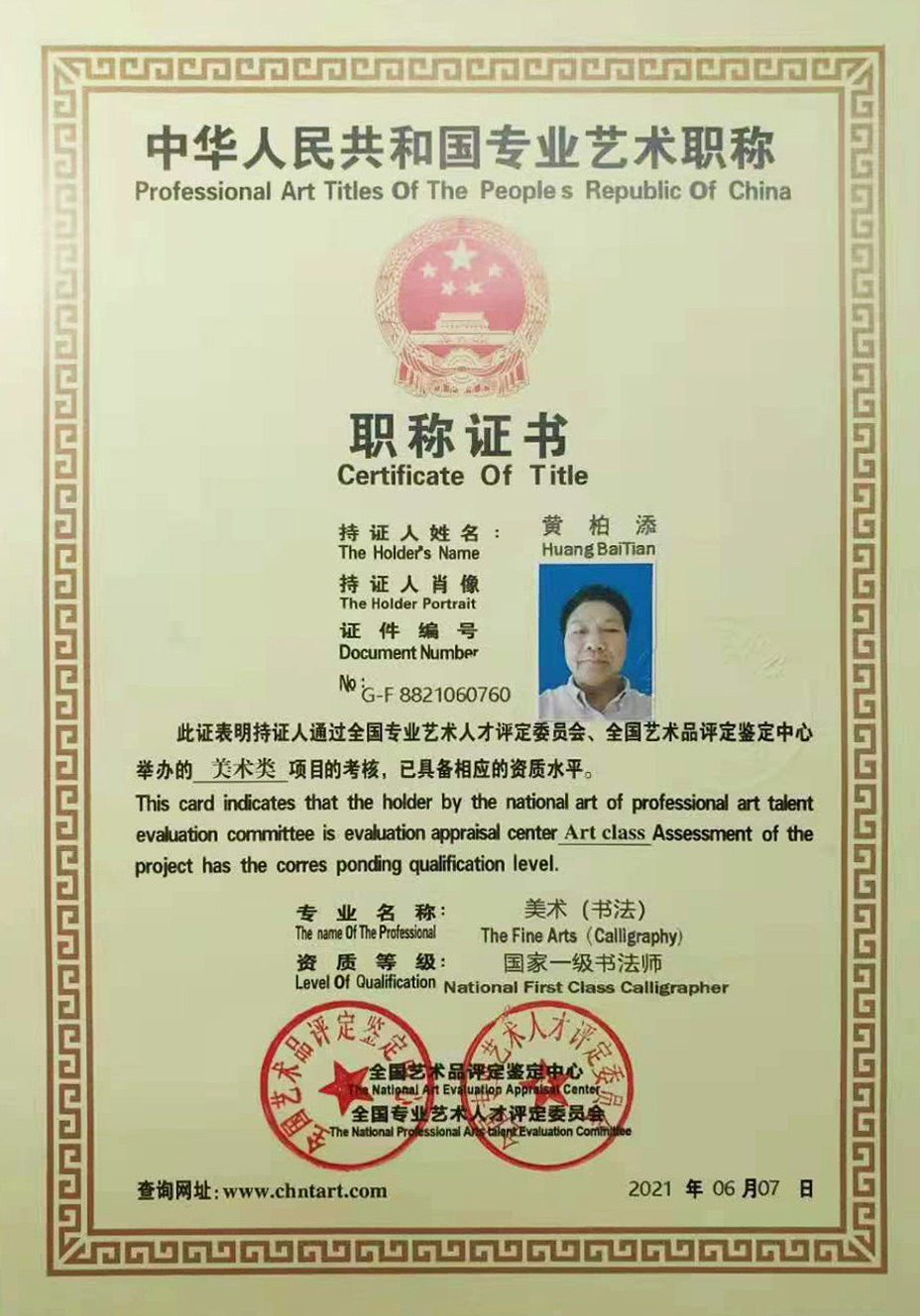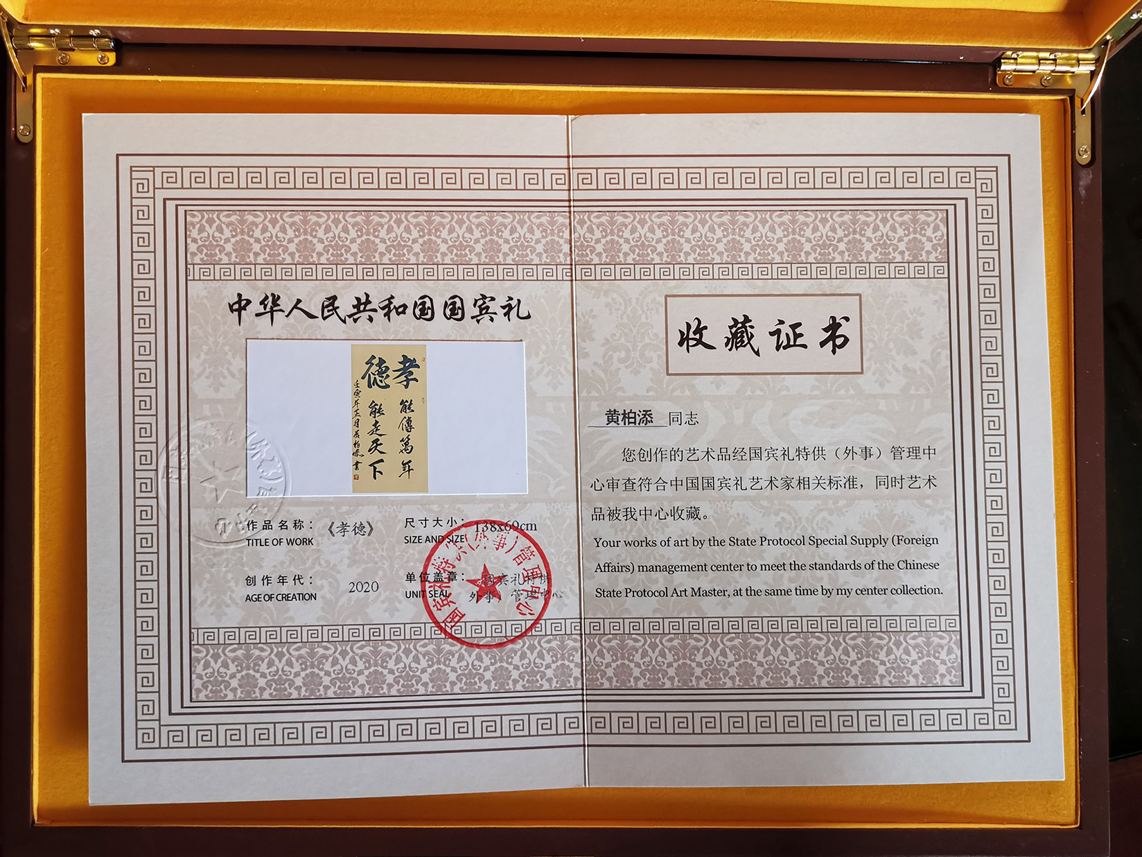 2021年被国礼艺术家鉴定评审组委会特授予“国礼艺术家”荣誉称号!
