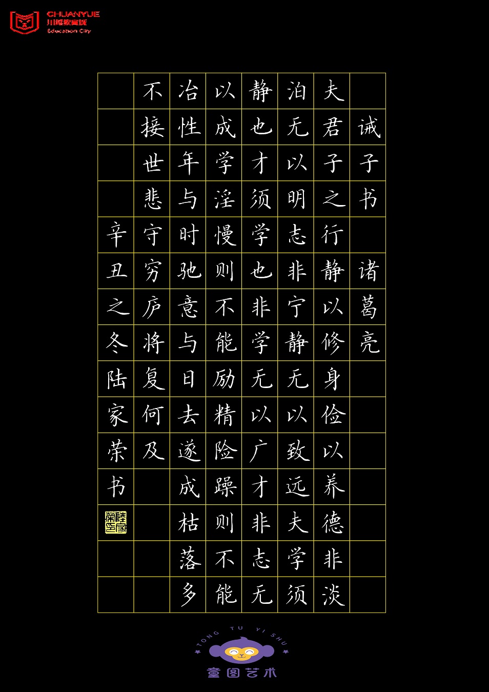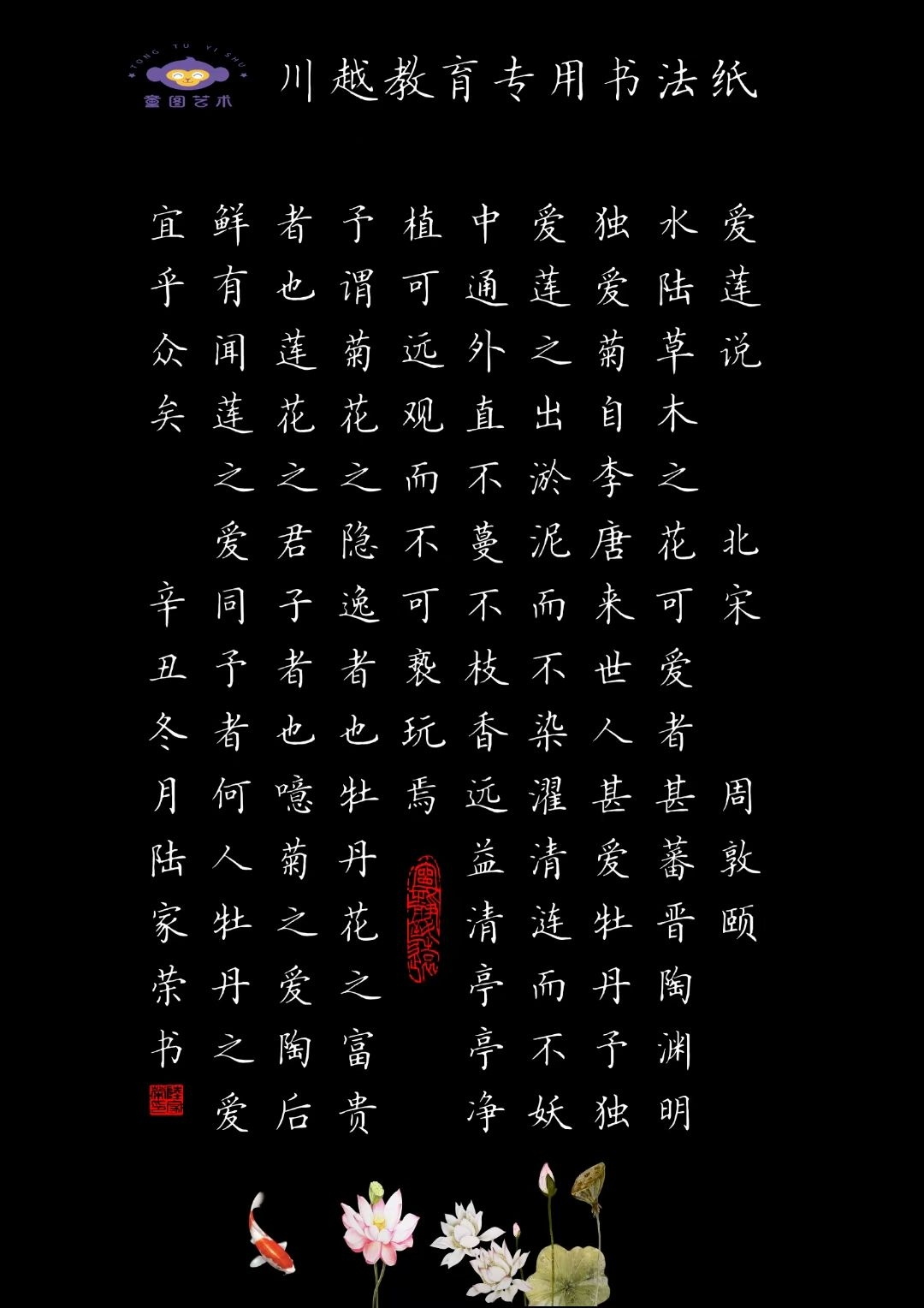 陆家荣,字红莲,号荷城居士。1994年出生于广西贵港。2016年加入中国共产党,贵港市青年书法家协会会员、中国硬笔书法协会会员、全国规范字高级教师。