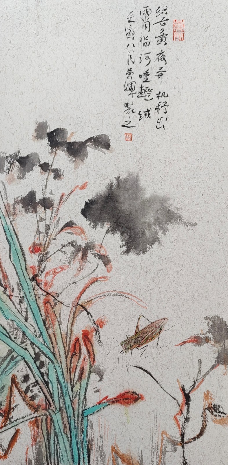 传统写意,以意写型,画面不在写真或细节,以笔意入画。秦荣辉注重骨法用笔,其画朴实无华,大巧若拙。他将生命诗意体验结合传统的笔墨形式,将创新渴望嵌入作品,表现出神入化的个人风格。无论数丈巨幅,还是斗方小品,常常随意挥洒,精奇生动,气势磅礴。他的画取材甚广,包括山水、花鸟、虫、也间有人物。而尤以泼墨山水、荷花最为得意之作。或简朴古拙,或清新雅致,或淋漓酣畅,妙意横生。数丈巨幅,随意挥洒,册页小品亦精奇生动,小中见大,气势磅礴。