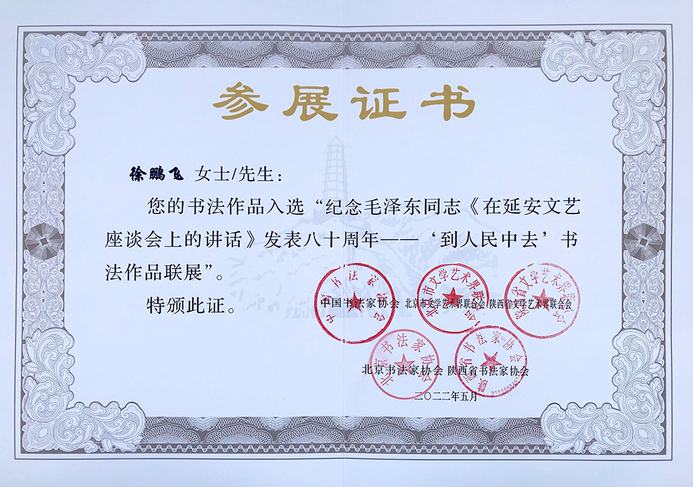 2022年参展“纪念毛泽东同志“八十周年——到人民中去”书法作品展
