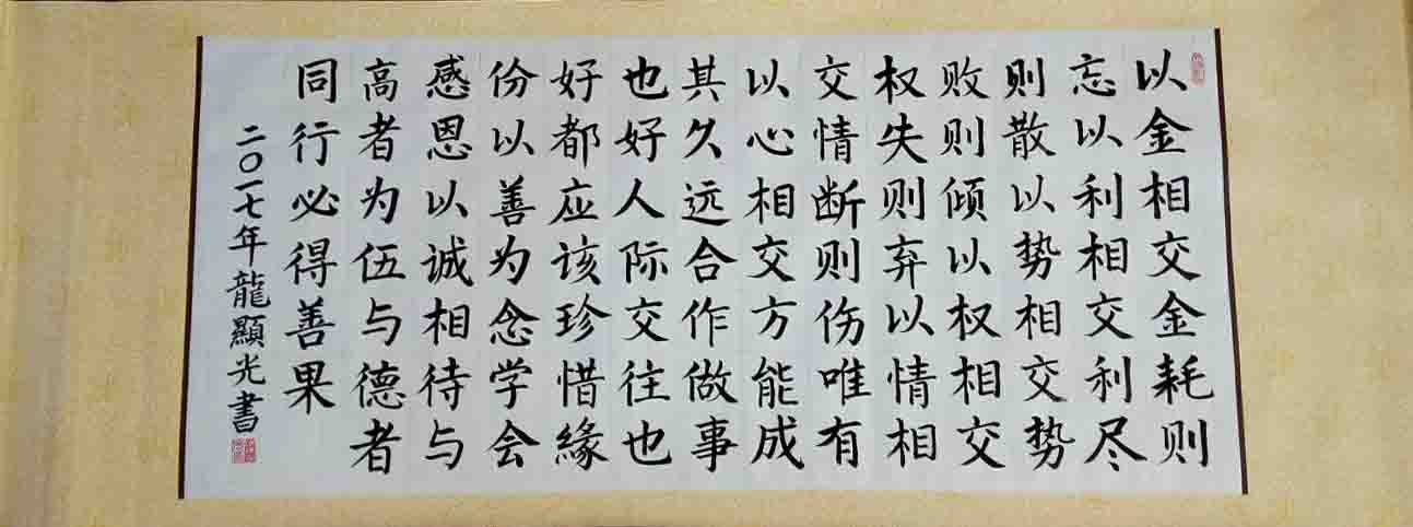 龙显光,男,1964年出生,苗族,大专文化,小学高级教师,贵州省铜仁市石阡县人。自幼酷爱书法,潜心练习,坚持不懈。三十年来擅用隶、楷、行、草体书写楹联,碑文、文书等,颇受社会赞誉。