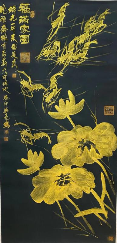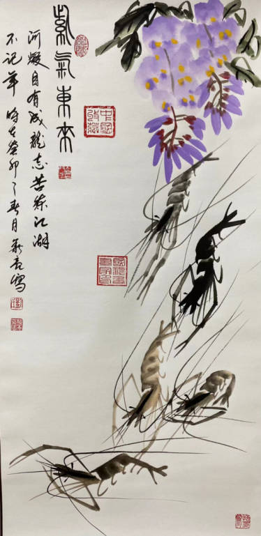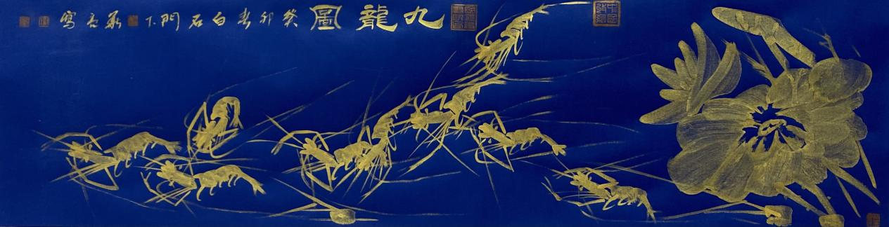 国画作品《九龙献瑞》2015年比利时198万高拍;2020年国家博物馆收藏,国家博物馆一年只收藏三幅作品;齐派水墨虾登峰之作