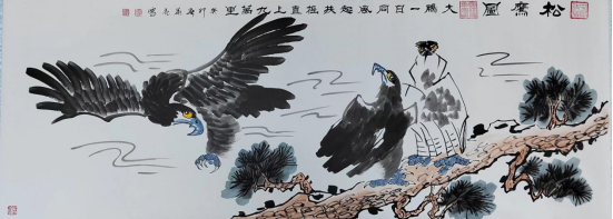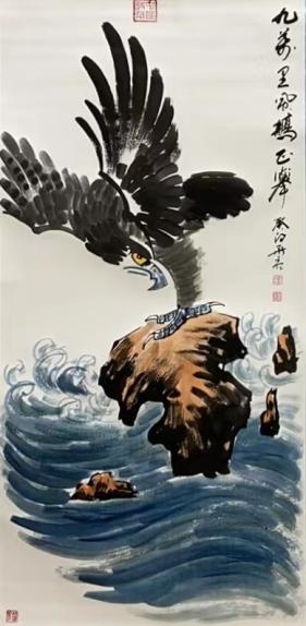 国画作品《松鹰图》李苦禅艺术研究院收藏,亚洲博鳌大会参展作品