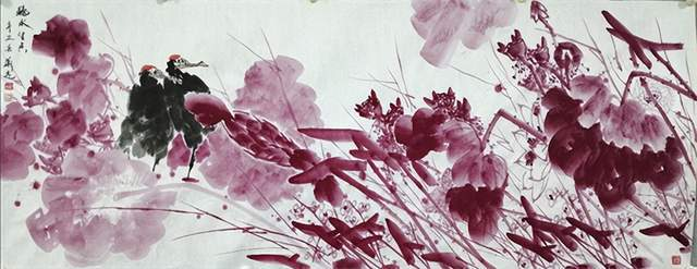 国画作品《春华秋实 》,2015年北京保利216w高拍,被清华大学校长王西勤收藏,于清华大学办公楼悬挂
