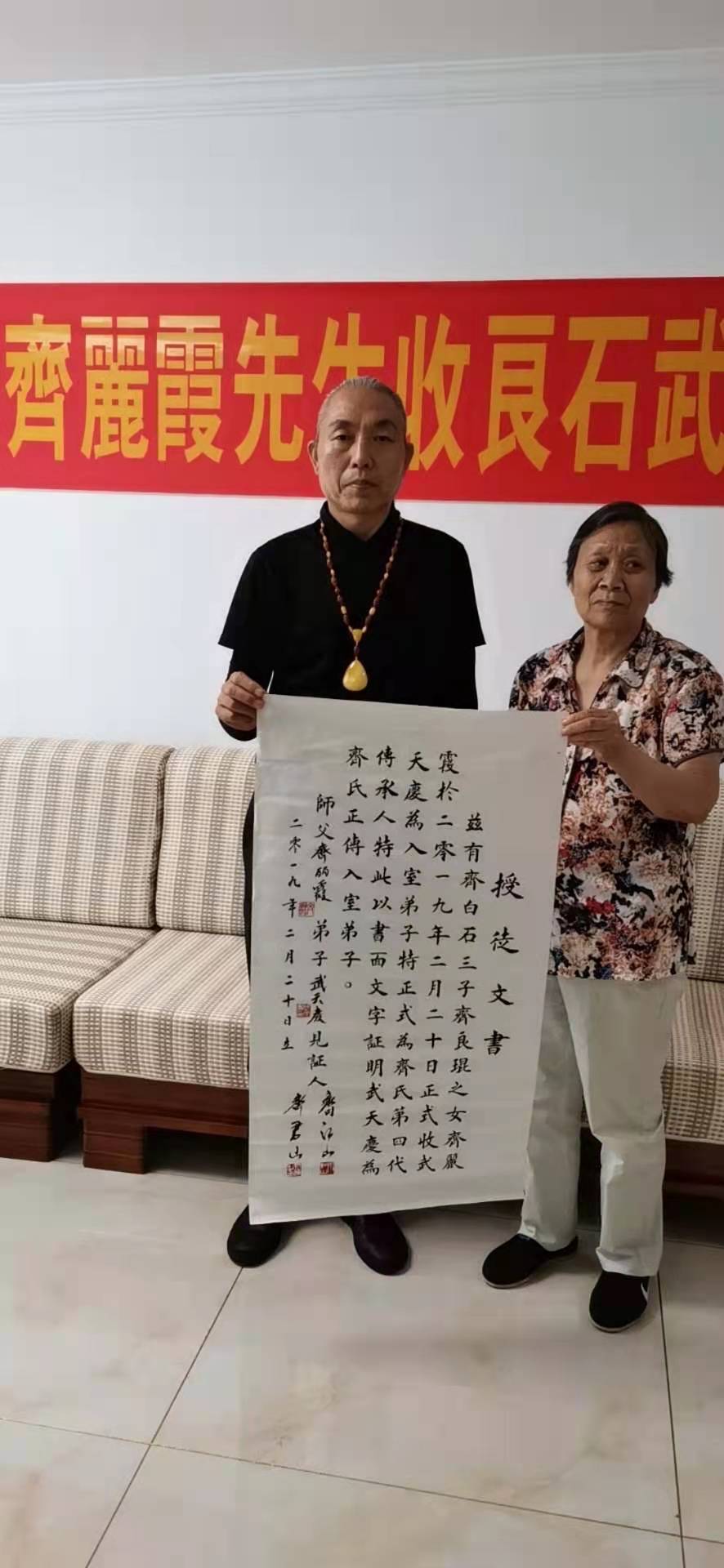 武天庆,1969年出生于河北邯郸,字良石,号白石轩主,师承齐白石三子齐良琨之女齐丽霞门下,齐氏直系传承大弟子之一。一级美术师,国家高级美术师,国礼(藏品)一级美术收藏家,现为中国齐白石艺术研究院副院长,中国齐白石艺术研究院河北省分院院长。
