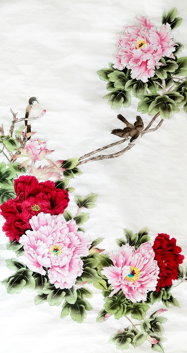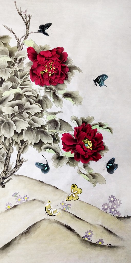 2016年国画牡丹,参加书画大赛荣获优秀奖。牡丹花雍荣华贵,美艳绝伦,富贵天香,花大色美,自古就有“花中之王”的美誉。一直被中国人视为富贵、吉祥、幸福、繁荣的象征。唐著名诗人刘禹锡有诗云:“庭前芍药妖无格,池上芙蕖净少情。惟有牡丹真国色,花开时节动京城。”袁树荣的写意牡丹,在继承国画传统的基础上,取西画技法之精华,将写意与工笔相结合。作品浑厚豪放,潇洒俏丽,空灵隽雅,情趣盎然,达到熟其性、取其形、得其神,形成清新明快、艳而不俗、神形兼备、雅俗共赏的艺术风格,2016年,国色天香,花开富贵》作品在文化部,全国美术考级机构,中国美术学院,社会美术考级中心《美术作品集》中。2018年作品工笔《连年有余》荣获书画艺术大赛一等奖。2019年工笔六尺《莲》荣获全国华盛杯全国书画艺术大赛一等奖,经过多年潜心专研作品得到了社会各界人士认可被中外有人收藏。同年6月18日中央电视台给"袁树荣"老师下达了"邀请函"赴京参加一年一度全国各地优秀人才颁奖盛典,在央视的舞台上现场作画,她的国画牡丹作品己显大师之风范,受到主持人与观众的一致好评,袁树荣老师被评为"中国当代最具特色书画名家",荣誉称号!。