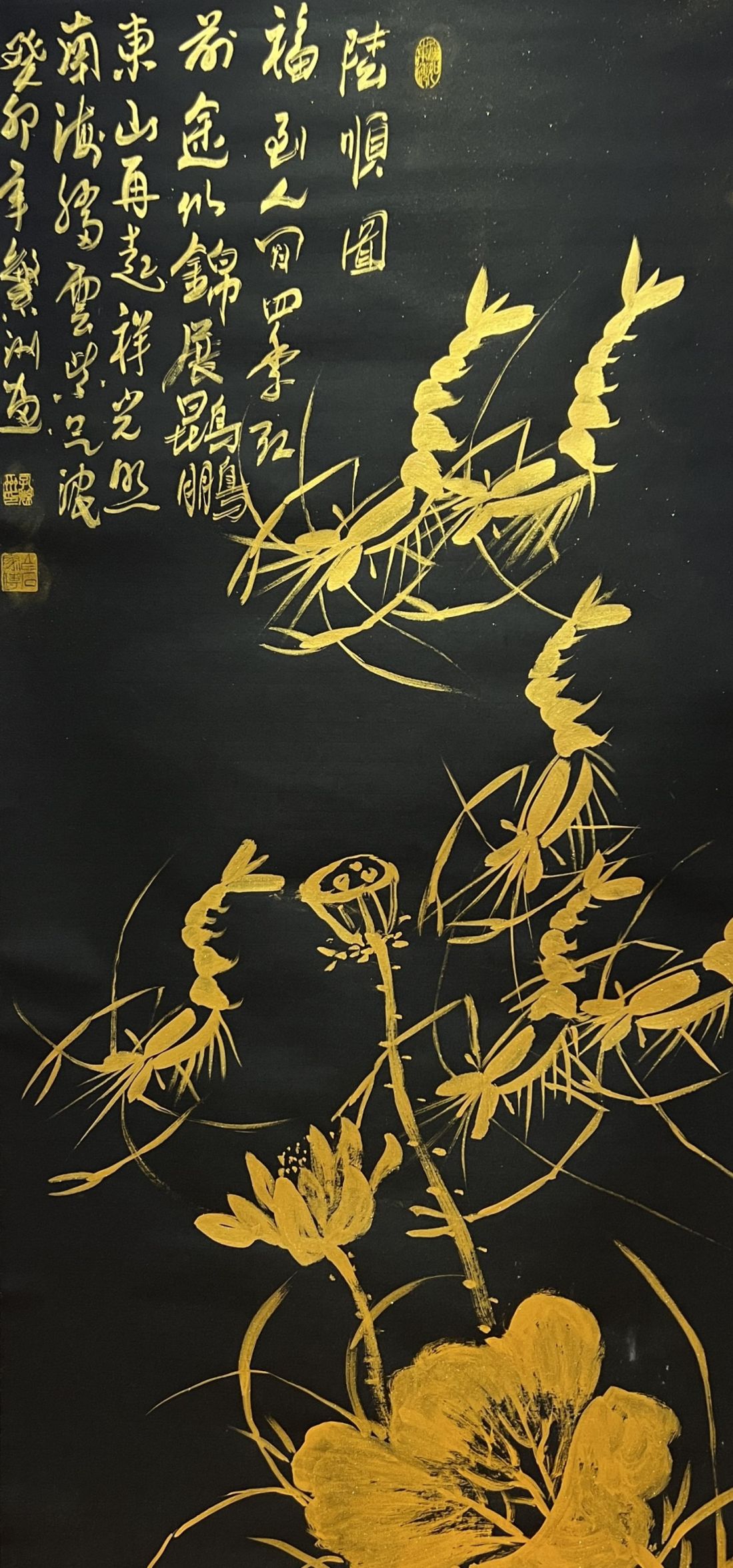 国画作品《金玉满堂-六顺图》