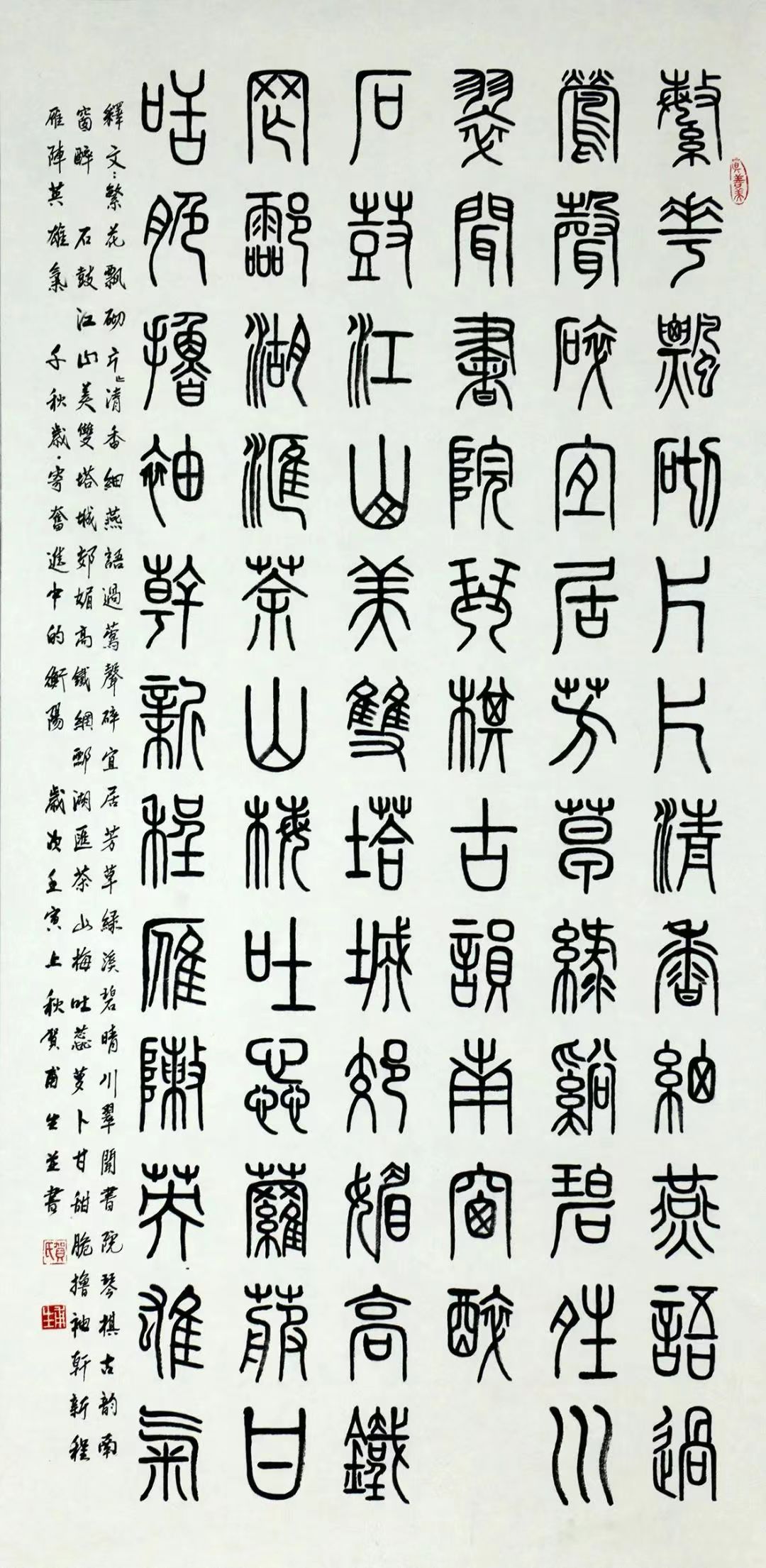 贺甫生老师自幼受父亲影响,习书法 50余年,尤其擅长篆书,个人出版了《诗联书法集》,作品多次入选国展。篆书国展并获得一等奖、三等奖。