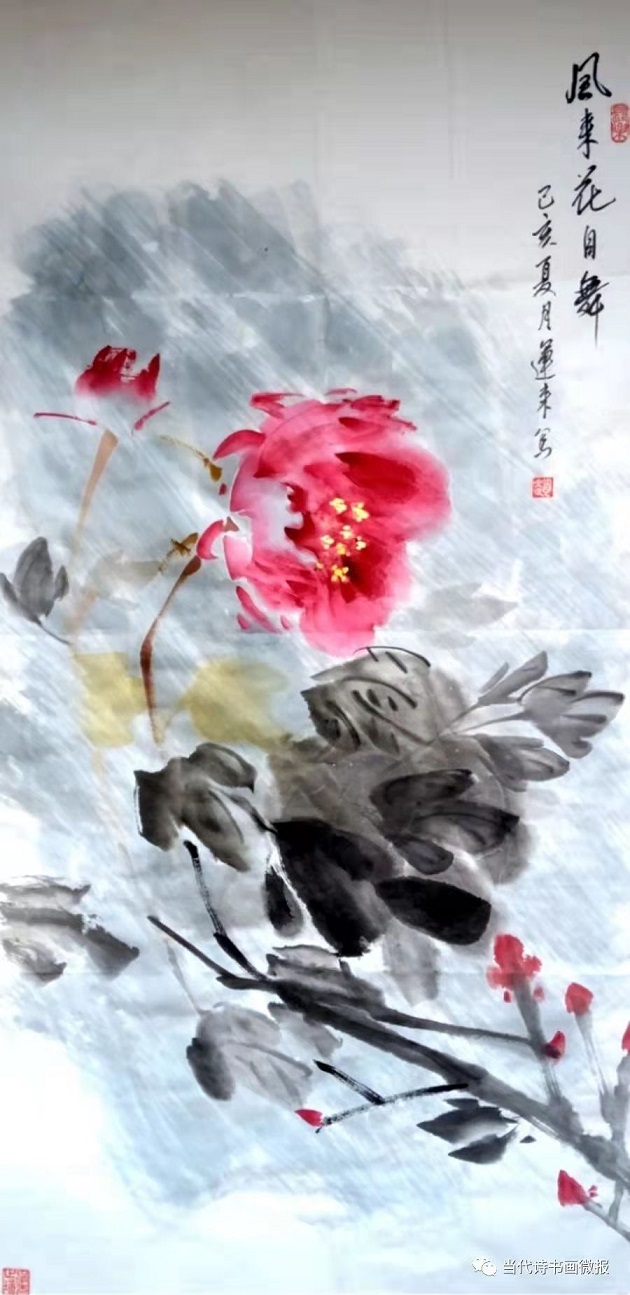 2019年12月,在墨海初心全国诗书画大展赛中,国画,风来花自舞,获得一等奖。