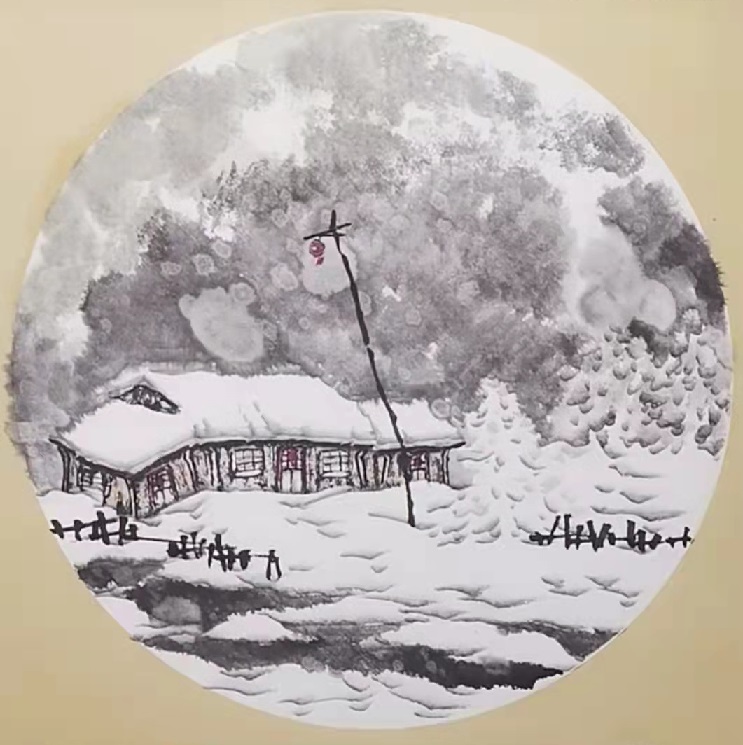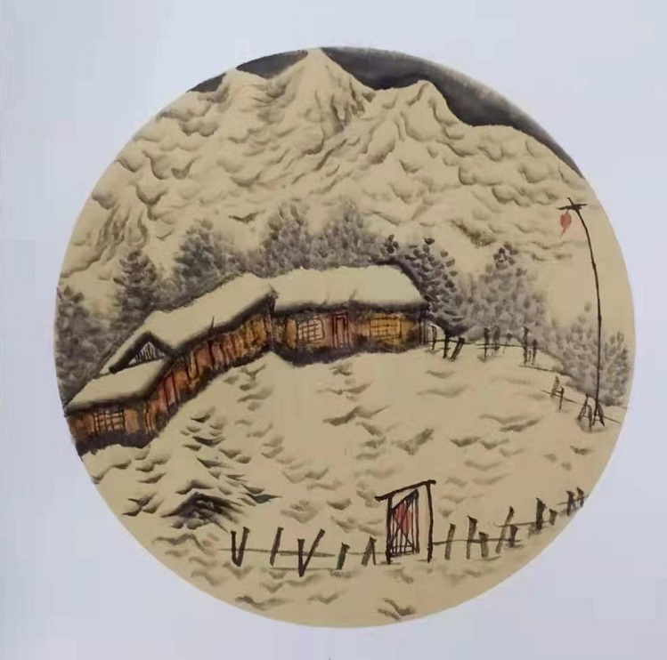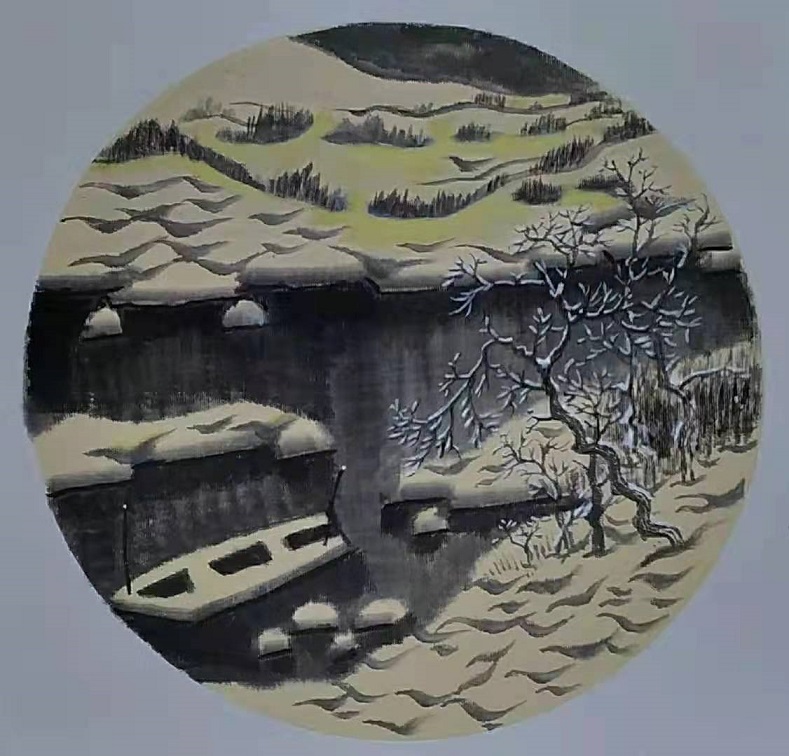2020年11月。国画作品 观景,静思,入选河南省第25届美术新人新作展。