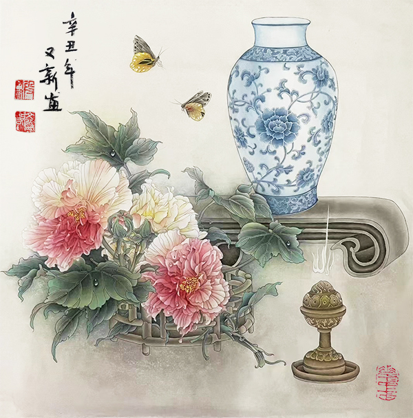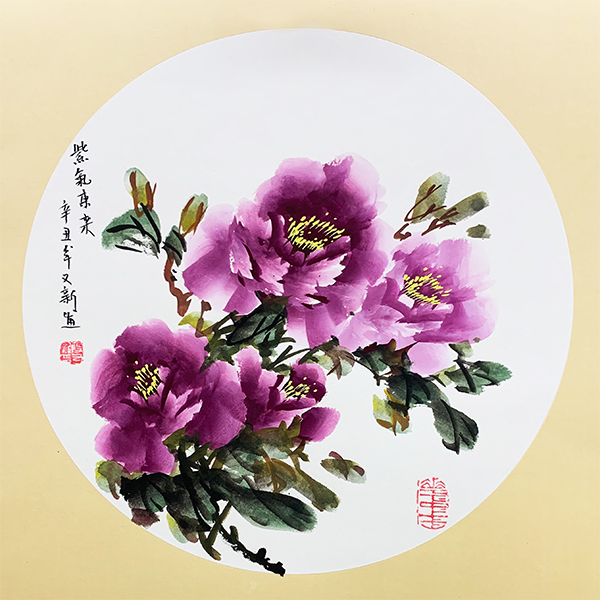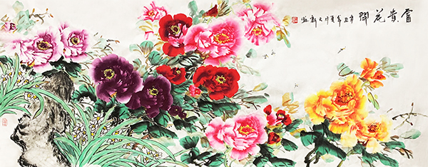 代表作品《富贵吉祥》《紫气东来》《花开富贵》《国色天香》等。