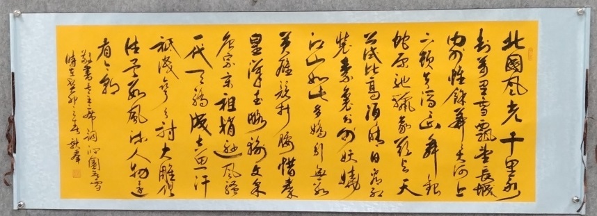 先生从小酷爱书法,后得多家名师指点,四十多年来,坚持不懈,孜孜以求,有着较高的艺术造诣。其作品用笔洒脱,行云流水,字体结构连带互映,动中有静,整体布局豪放,灵动大气,观之令人赏心悦目,并能领悟到一种心灵净化的美感。