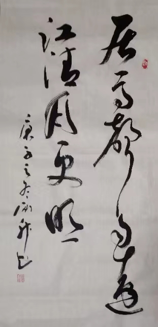 许忠银先生书画并举,师古研艺,广临法帖,不懈求索,深悟书道,常常在书法运笔时夹杂着国画的技法,用墨枯而不干,润而有度,运笔行云流水,遒劲有力,老练而不死板,灵活而不张扬,形成了自己独有的行草风格,古风今韵,雄秀并举,雅俗供赏。