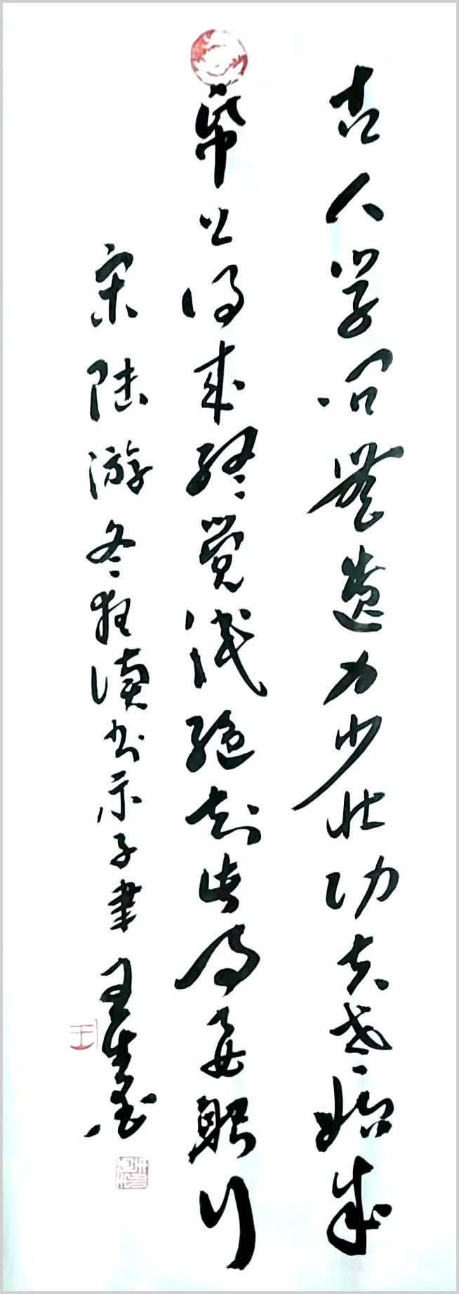 自幼酷爱书画艺术,师承于右任大师的标准草书,书法作品入编《中国书法家作品集》、《当代中国名人名家书画集》、《中华百年国粹大典》《中国现代书画篆刻名人录》、《中国历代龙字大辞典》、《中国当代书画艺术家辞典》等三十余部巨制书画辞库大典。