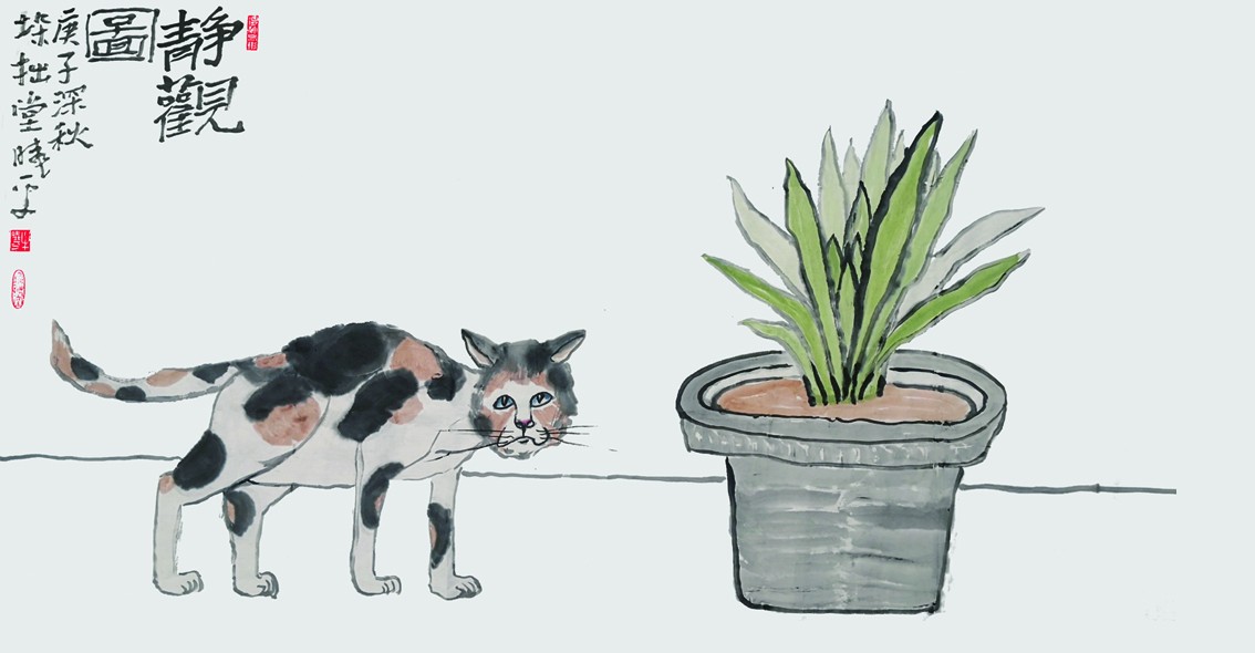 他与国内100多位几乎是顶级的著名艺术家互动,探索独特的以猫为题的书画会友艺术形式,这在国际艺术家活动空间也是独一无二的。