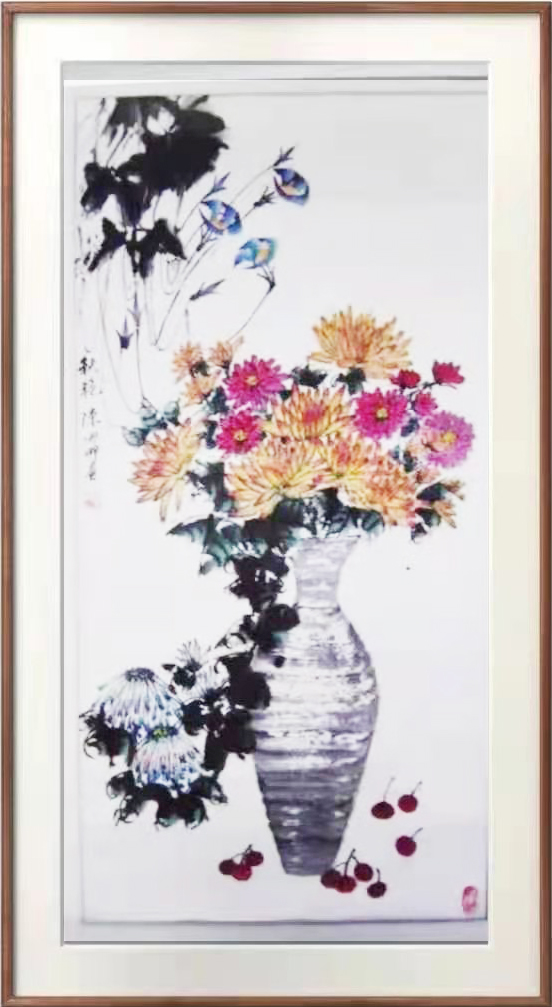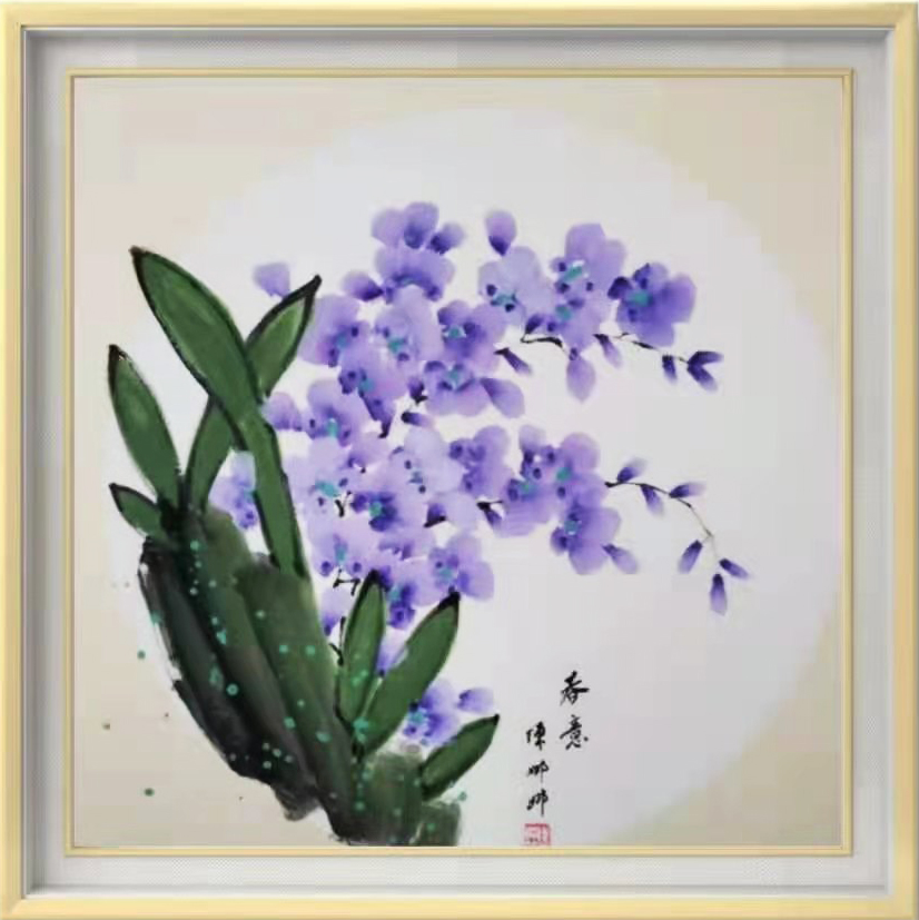 自从中央电视台书画频道开播后,我跟着徐湛老师,刘存惠老师学习中国花鸟画。