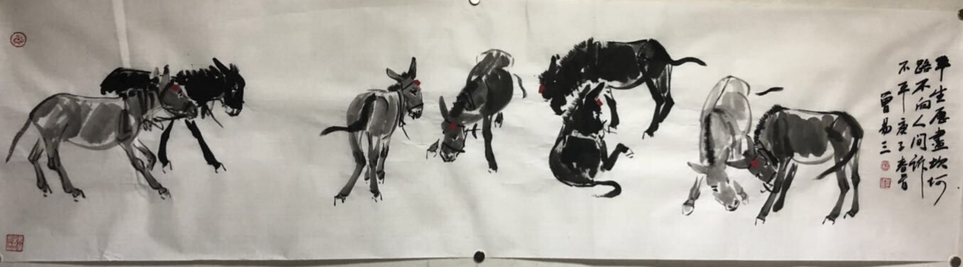曾易三,早年入伍,曾在兰州军区某集团军及陕西省军区宣传部门工作,后转业到宝鸡卷烟厂从事宣传工作。90年进修于西安美术学院,随刘文西、时协中、史涛老师学习绘画。后主攻花乌、动物。1995年八 一建军节,为纪念世界反法西斯战争胜利五十周年,兰州军区某集团军举办个人书画展览;1997年八 一建军节,国画作品《毛驴图》参加兰州军区政治部举办的“庆祝建军七十周年书画展览”;2014年10月,国画作品《西部山水》参加陕西省轻工纺织烟草森工系统职工书画比赛 ,荣获一等奖;编著出版《写意毛驴新技法》一。,漫画家华君武对其动物画和毛驴评价甚高,被认为是“黄胄之后画驴第一人”,并题词鼓励。现为国家一级美术师,陕西省美术家协会会员,陕西省书法家协会会员。