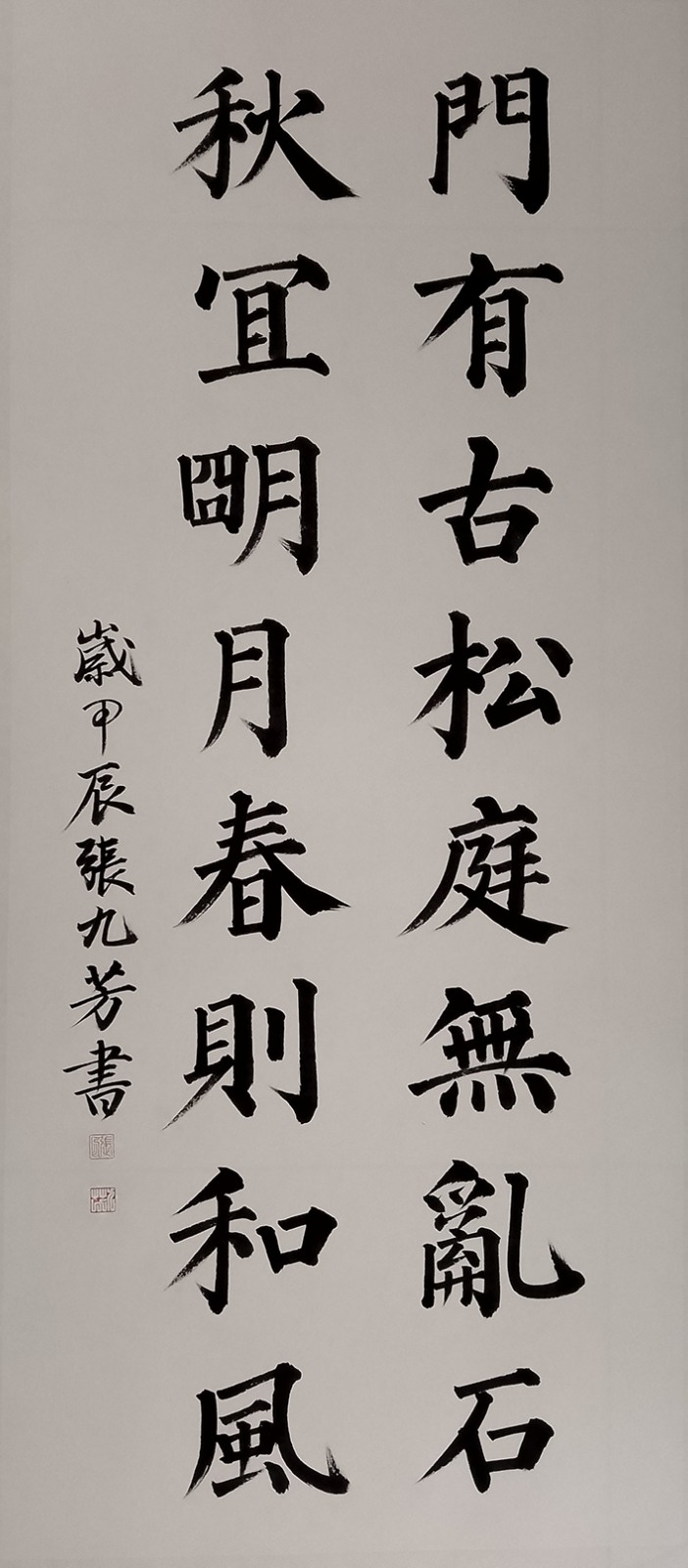 张九芳,1986年生于天津,中国人民解放军陆军炮兵防空兵学院毕业。曾多次参加国内外模特大赛。国画大师徐悲鸿先生再传弟子,近代美术教育家萧淑芳教授的入室弟子。国家一级美术师、中央国家机关美术家协会会员、香港文联美协理事。中央电视台CCTV艺术名家栏目特聘艺术顾问。受聘为北京多家拍卖公司对徐悲鸿书画的鉴定工作。工花鸟、走兽,楷书、榜书、皇家书法等,尤其继承了徐悲鸿徐大师奔马图的技法精髓,所作奔马图和悲鸿先生所作形神兼备,肌肉强健,腹部圆实,昂首奋蹄,鬃毛飞扬,精神抖擞,意气风发。其皇家书法凝结了清代各个皇帝的气质,凝结了清逸典雅、雍容华贵的独特风格。其颜体、柳体、榜书“福”字,书写不下两万幅,间架结构精准无误,匀称舒适!尤其“福”字被称为中华第一“福”字!