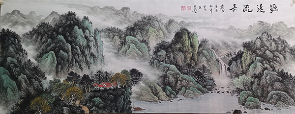 画家擅画写意山水,在墨与色,工与写,雅与俗兼容。在空间结构,色调意趣方面做了大胆地探索,形成了有鲜明时代特色的山水景物,继承传统笔墨技法,博采众长,在艺术上锲而不舍,求艺不止,其作品大气滂沱,形神兼备,有夺人之目之感。