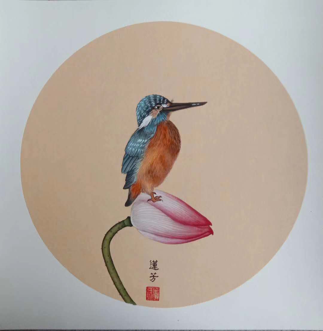 李莲芳,字德莲,号云水禅心、逸清居士。云南红河州开远人,自幼喜好美术专功油画,后受佛家影响,爱上传统艺术,作品主要以山水花鸟为主,其作品出尘飘逸,像是一湾清泉通澈空灵。