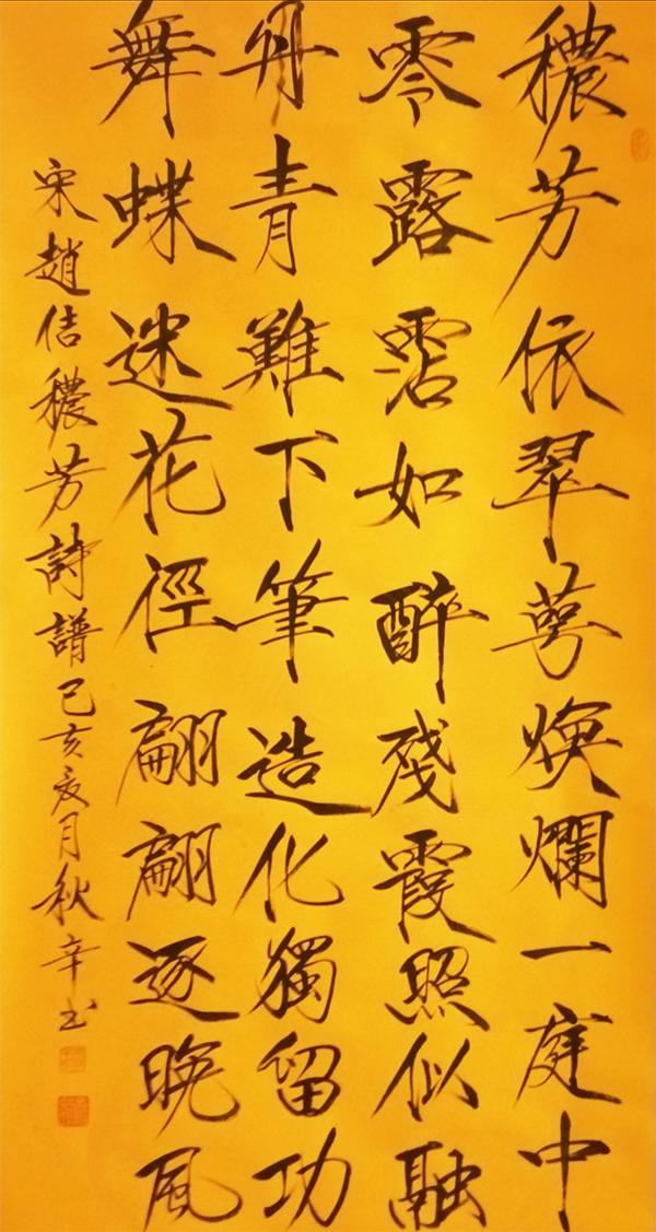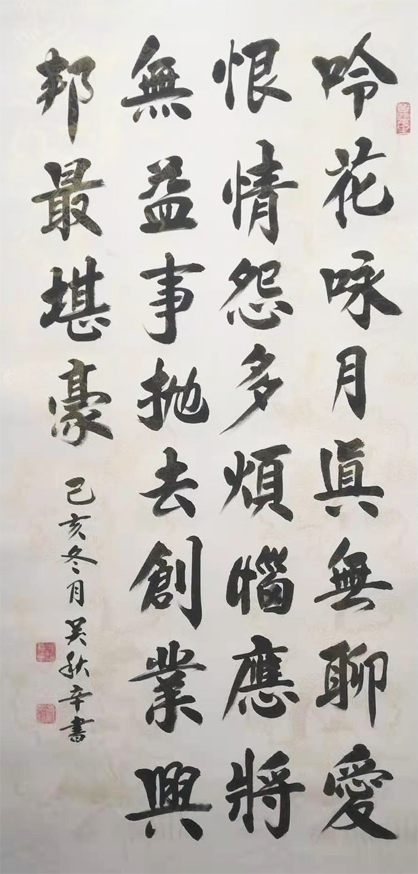吴秋辛,实名吴继峰,字之丹,号秋辛居士,知行斋主人。现为中国书法榜书委员会会员、中华诗词研究会理事、神采书画院副院长、北京长城艺术院签约书法家,中国白居易书画艺术研究院会员,河南书画家协会理事、国礼艺术家。