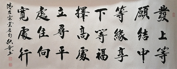 幼染书道,师承二王。后临颜柳欧赵之精髓,三十年如一日,临池不缀,终有所成。作品以行楷见长,章法疏放妍妙,天资神纵。字迹风神洒落,入木三分。 曾多次参加全国性书画大赛并取得奖项。2015年被邀参加“长城杯”全国书画展荣获金奖,书法作品被组委会收藏;2016年被人事部全国人才流动中心及《中国人才辞典》编委会选入《中国人才辞典》;2017年11月荣获“中华艺术英才奖”,同时被授予“影响中国的当代书画大家”荣誉称号。