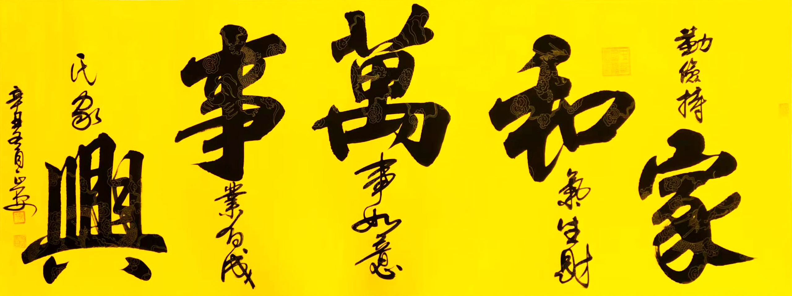 自幼酷爱书法艺术,浸润于书山学海,其早年深研柳公权正楷,孙中山行书字体。后又深得二王法义,临碑摹数帖,打下了深厚的笔墨功力,在榜书上更是颇有造诣。从古今名家中汲取营养,钻研行草技巧,从生活中积累素材,从传统中求得创新。在长期的揣摩苦练之后,已深悟笔法之奥妙。