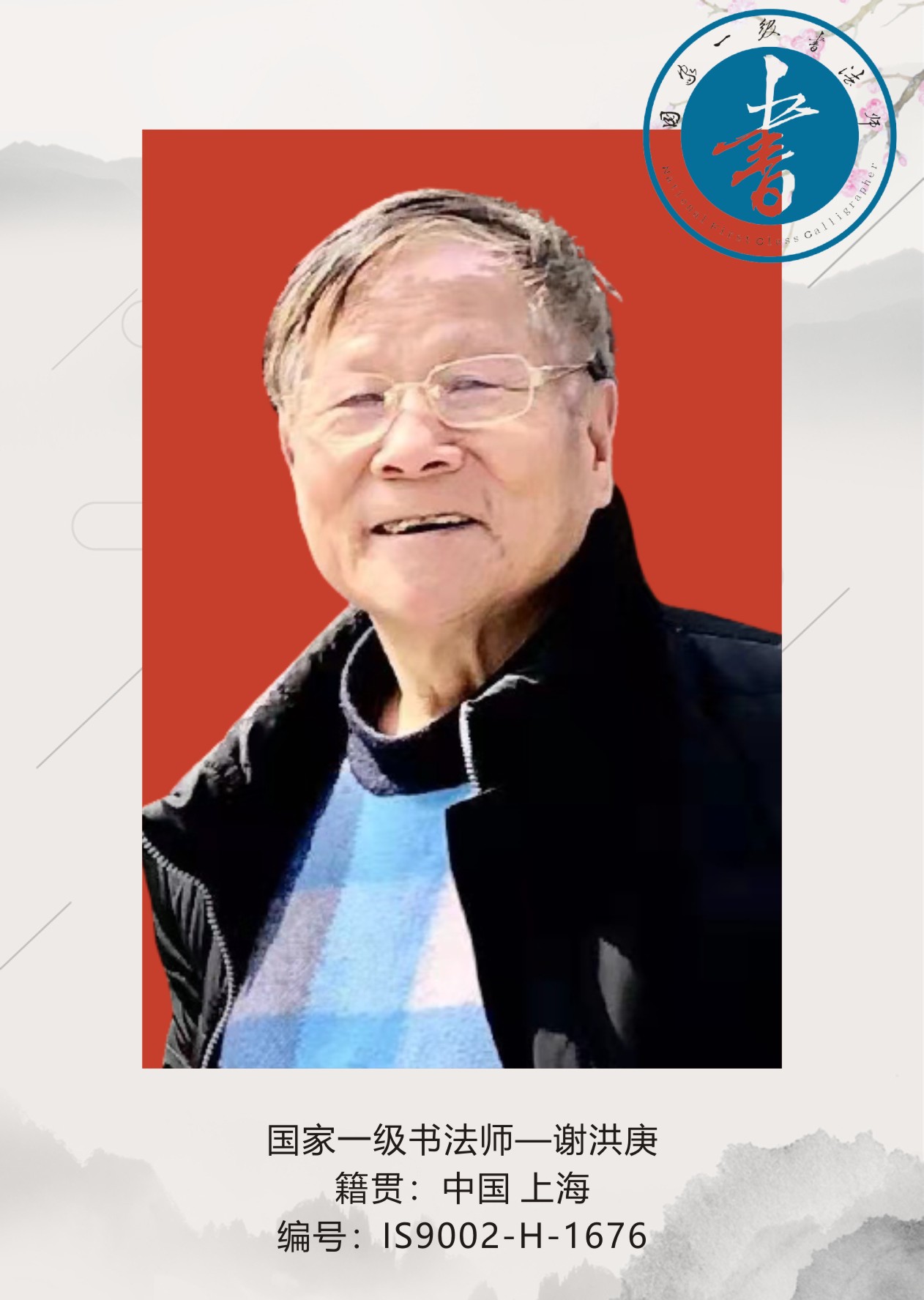 谢洪庚,男,1943年6月18日生于上海,祖籍浙江绍兴人,号望奉楼主。1987年7月加入上海市书法家协会、国家人事部中国书画人才一级书法师,国家一级书法师,国家一级美术师。曾任景德镇陶瓷职业技术学院客座教授,现任江西贵溪象山学校书法导师,上海《墨宝瓷林馆》艺术顾问。1991年入编《中国现代书法界人名词典》;2003年入编《上海市现代书画家名录》;自2009年2月迄今,在中国瓷都景德镇从事陶瓷艺术品创作。2016年入编《海派书画家名典》。2011年9月由中国青年出版社出版个人专著《书法》一书,被列为全国高等学校教材。2017年10月,个人专著《我的书法陋见》正式出版。2018年4月荣登《华夏品牌艺术名家榜》。