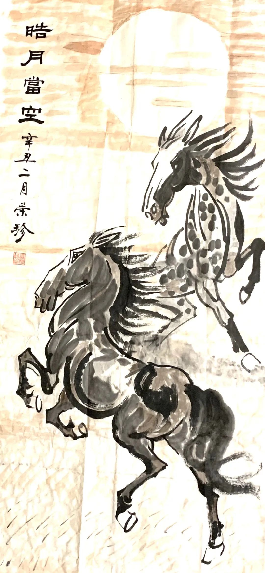 打下一定基础后,又专门对著名画家王洪喜先生的作品做了深入研究,将其作品的笔墨技巧及独特艺术特征吃透。