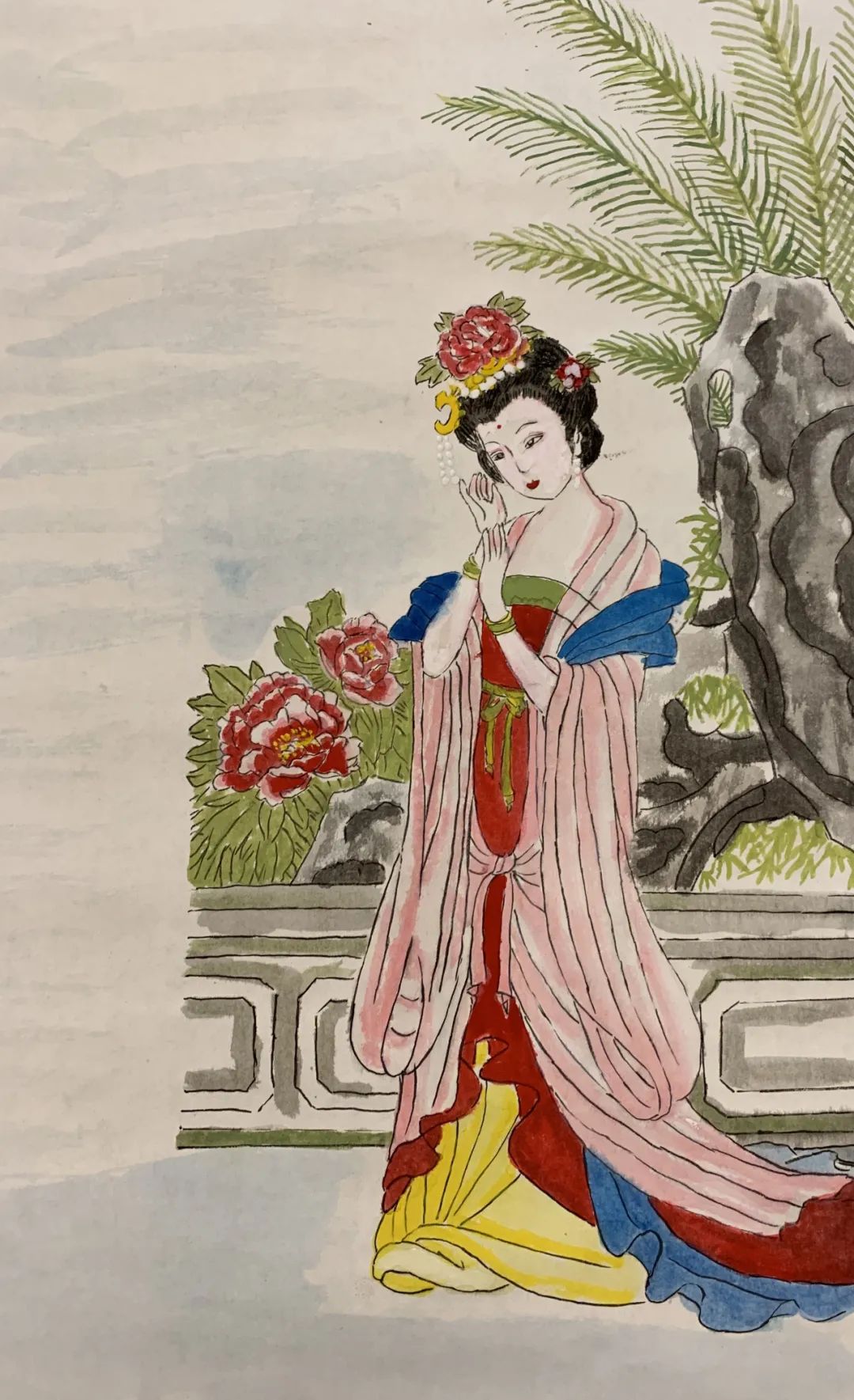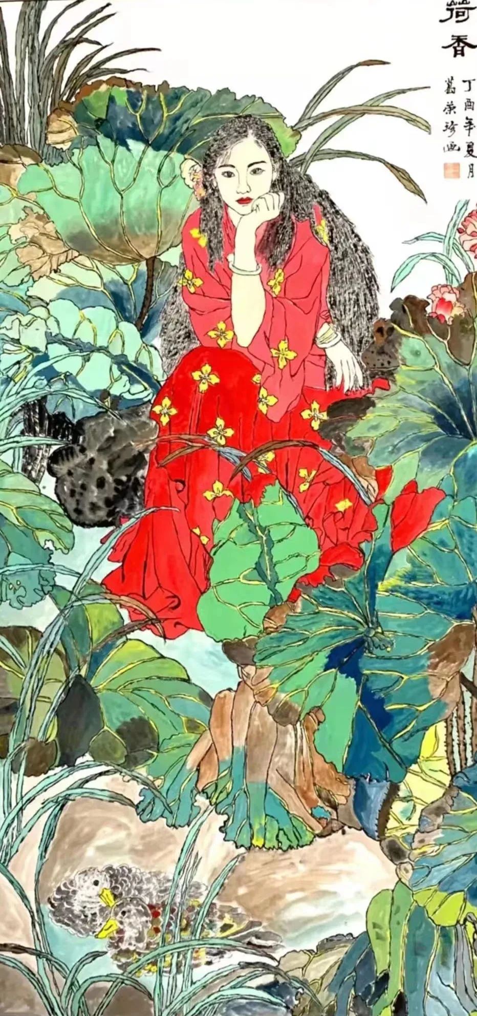 为了让自己的作品的线条表现更具张力,表达手段更丰富,她又学习了各种白描、大小写意花鸟画等传统技法。