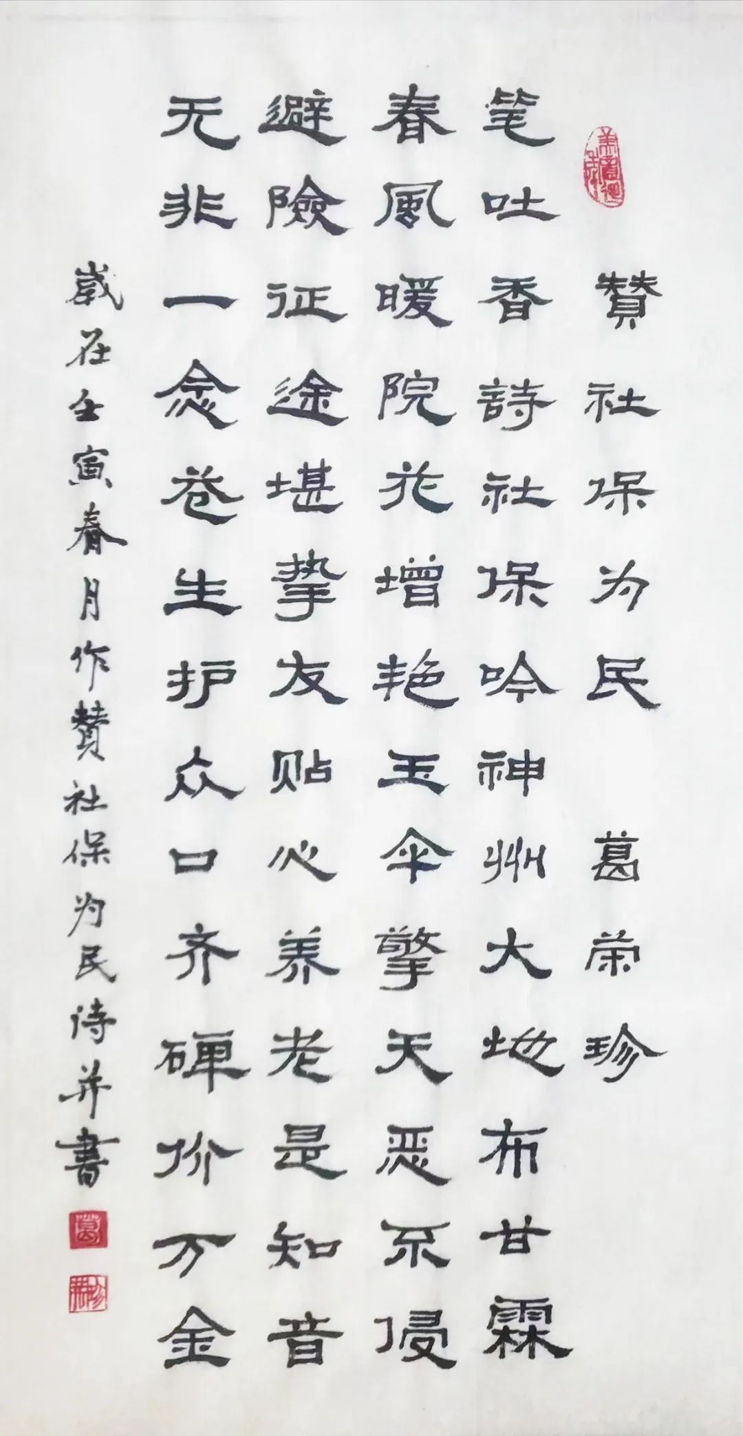 退休后,在2018年参加了老干部局举办的建国四十周年画展,作品《我的江山永固水长流》成功入选,并入选四十周年画册。