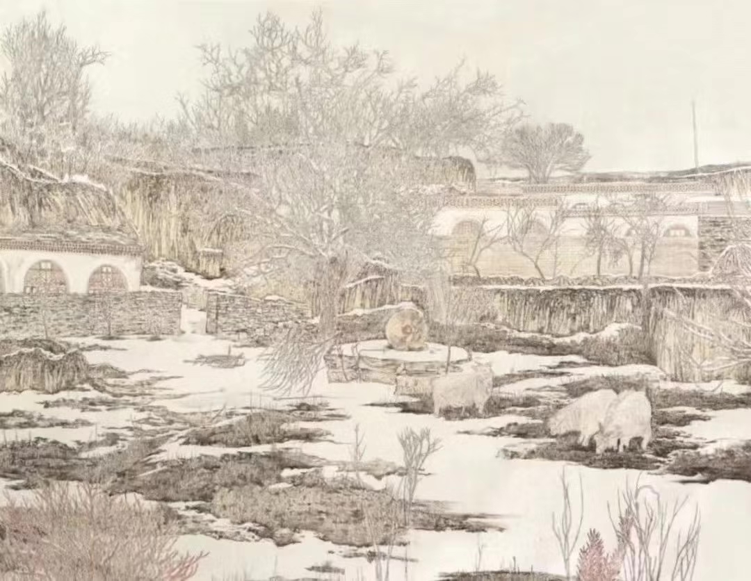 凋零萧瑟雪景色,傲骨青松满山葱。