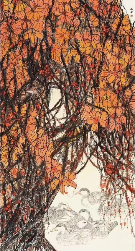 候鸟群去何方?寒鸭鸣声颤,不舍鸢湖恋。