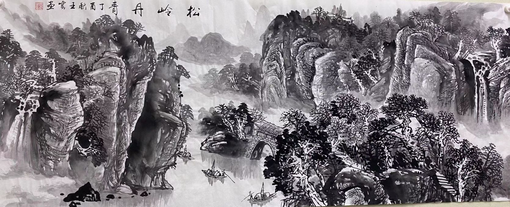 2017年 王云墨色山水作品《松岭丹青》以58万的价格被香港富商收藏