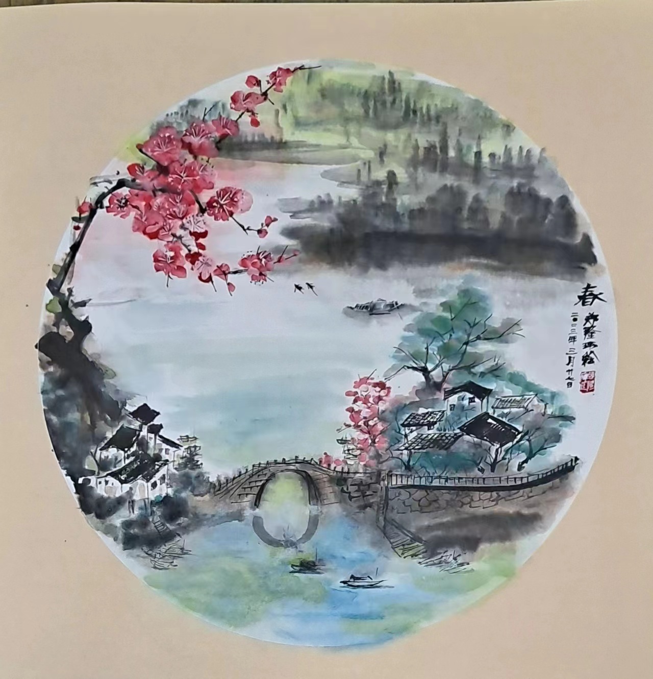 在与画友合作,在工人文化宫绘画了大型伟人像等等。其他作品《一支梅》《江南春早》等山水画很多省市领导收藏,特别是青年职工在结婚时,绘画梅花作为结婚纪念。