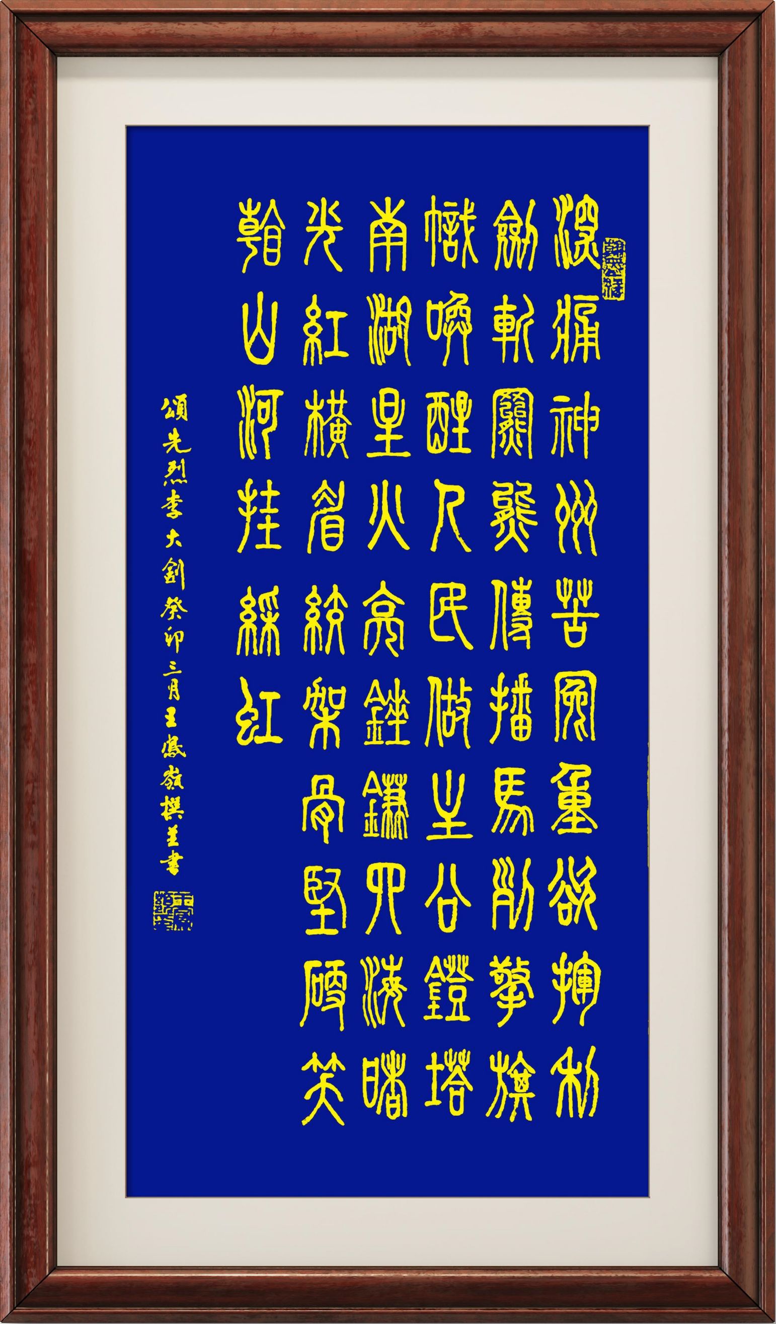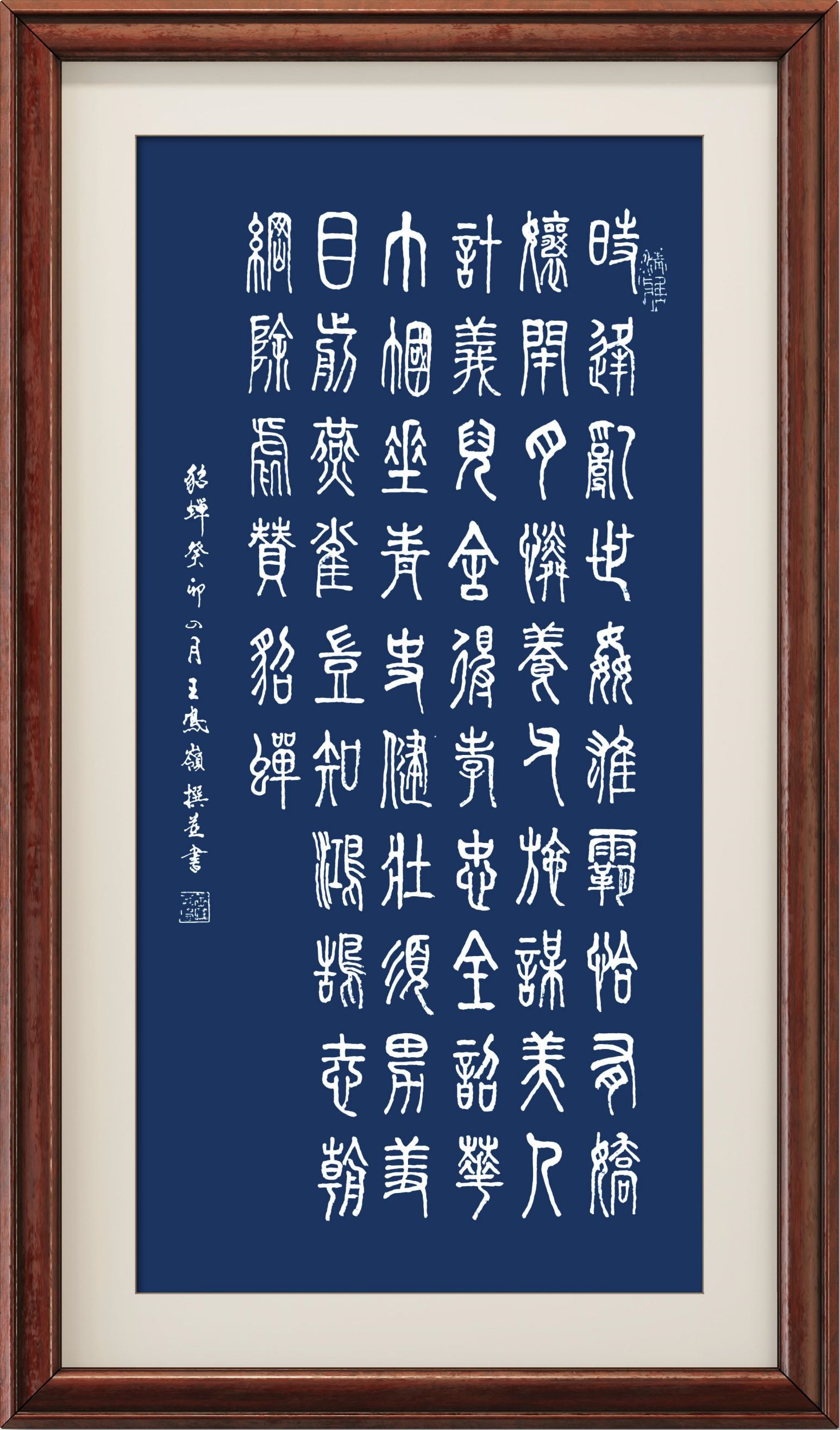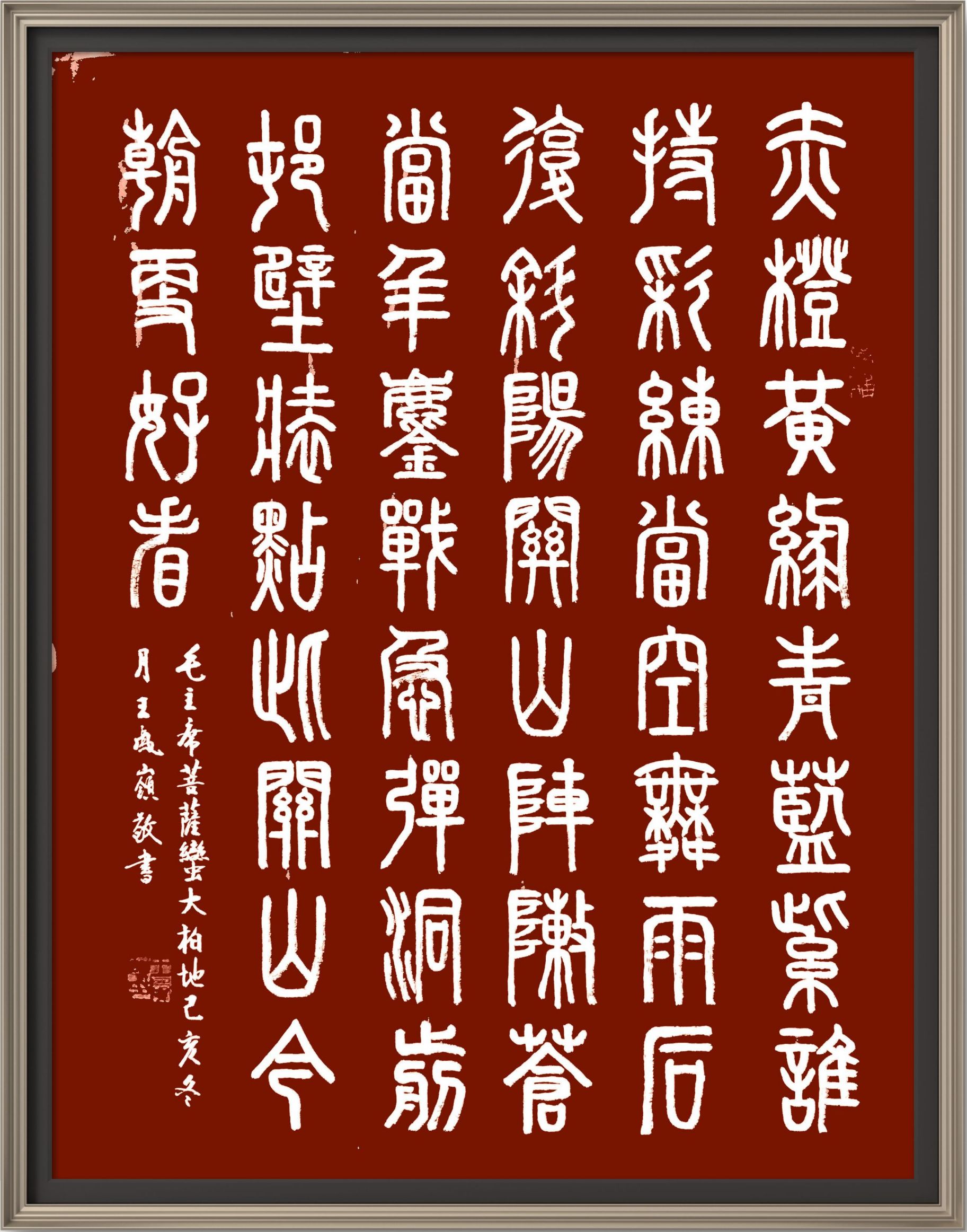 自幼以名帖为师,50余年潜心研习中国书法篆、楷、隶、行书之精髓,从诸帖中吸取营养,习书不缀。近年来主要研习篆、隶书,兼修楷、行书,并寻求新的表现手法。