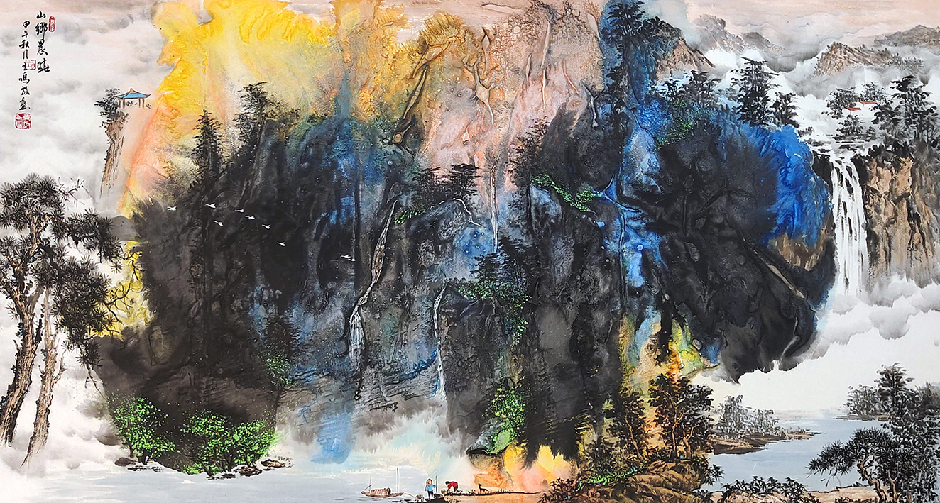 北京钓鱼台国宾馆收藏王鸣放艺术作品《山乡晨晓》