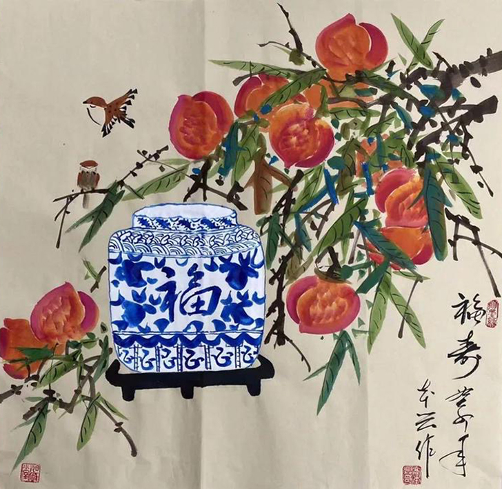 2024年1月10日创作一副国画《锦上添花》作品,由中国国家博物馆收藏。